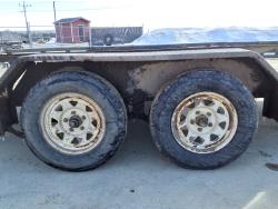 82 inch wide deck, wood deck, stand up ramps, spring suspension, ball hitch, stake pockets, 3500 lb axles, 205/75R15 tires