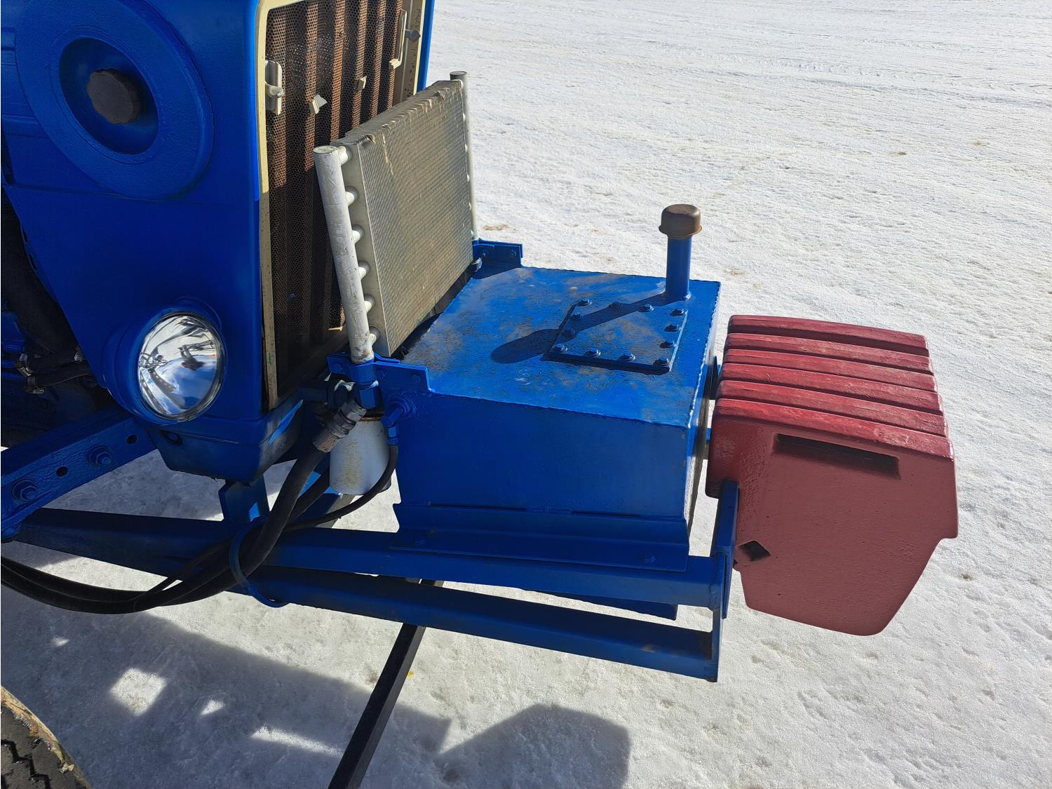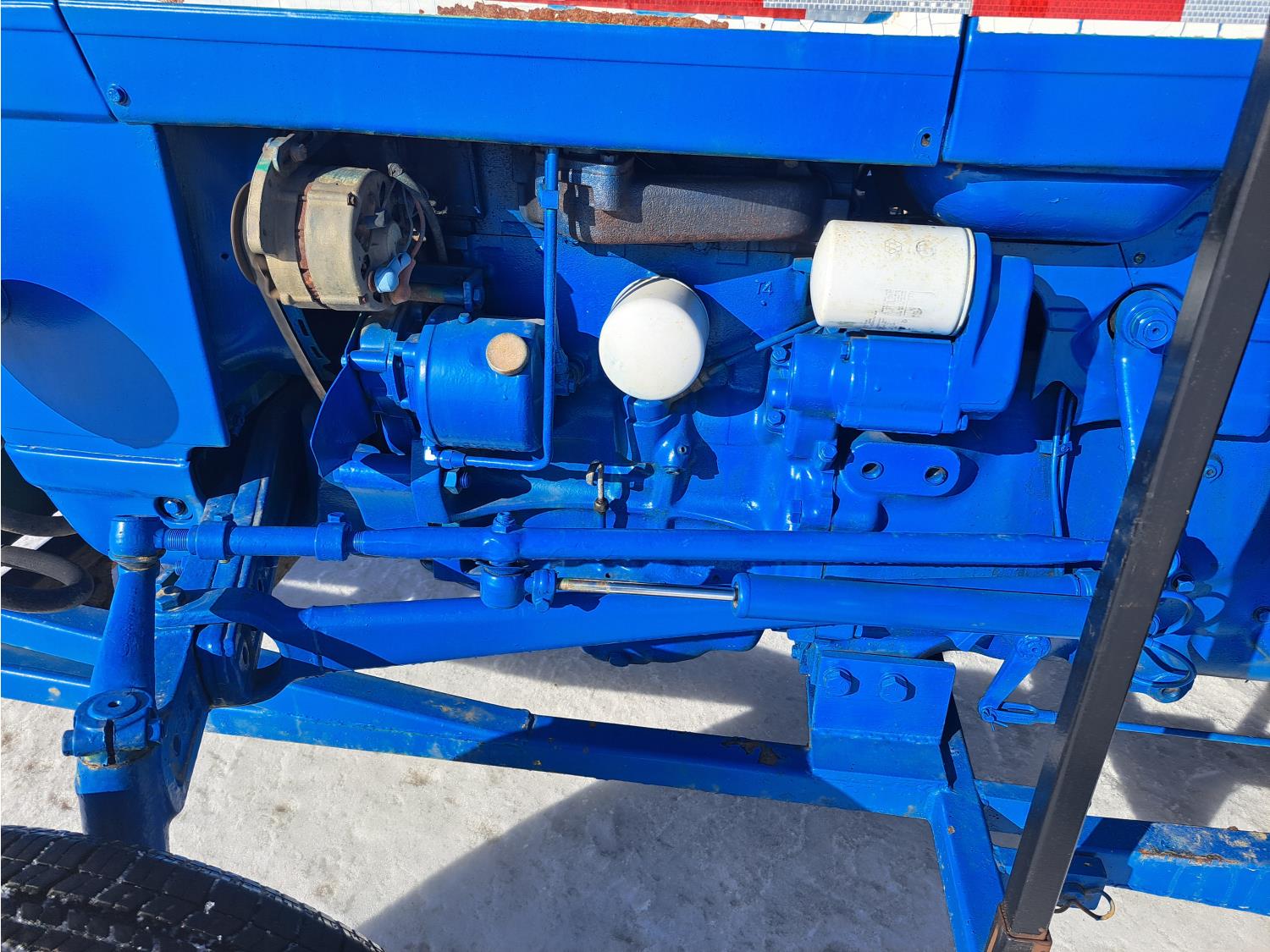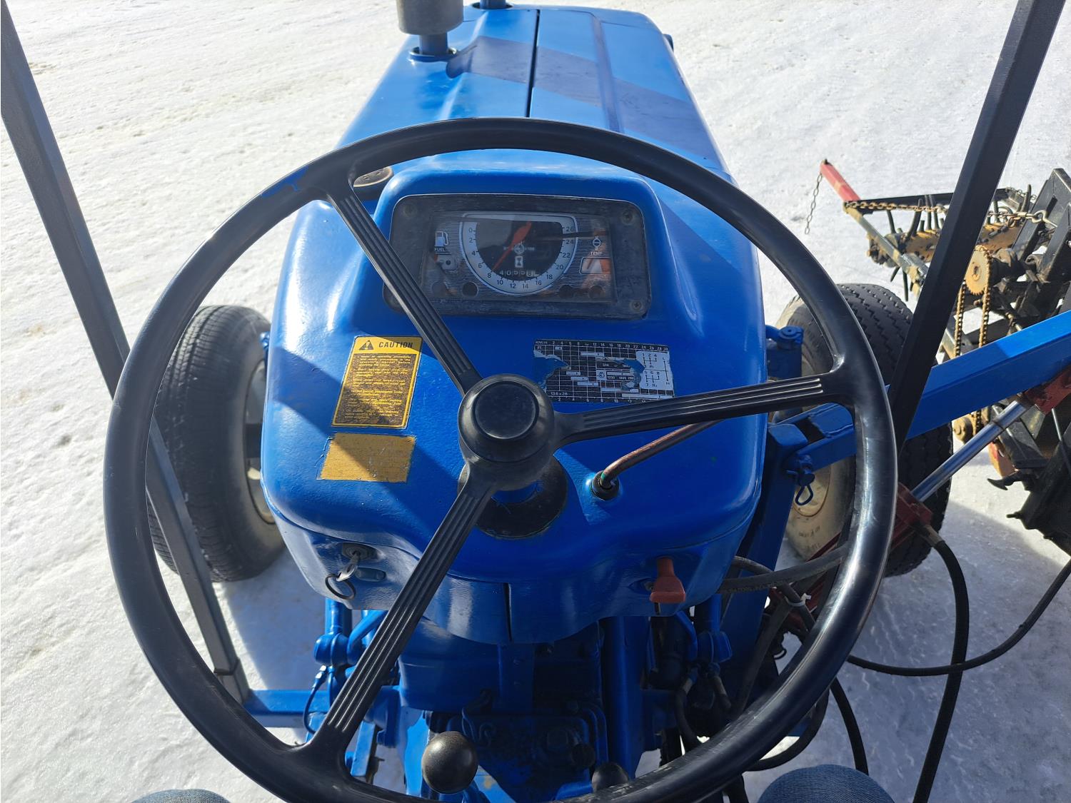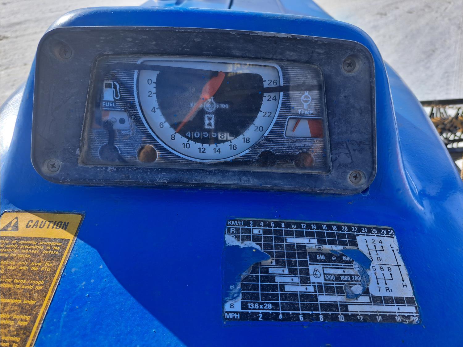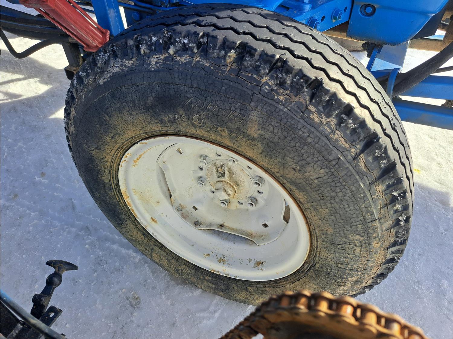 Ford 2.9 L 3 cylinder 48 HP, diesel engine, 40 PTO HP, 8 speed manual transmission, open station platform, 3 point hitch, 16.9-24 rear tires, 4 ft pallet forks and sod cutter