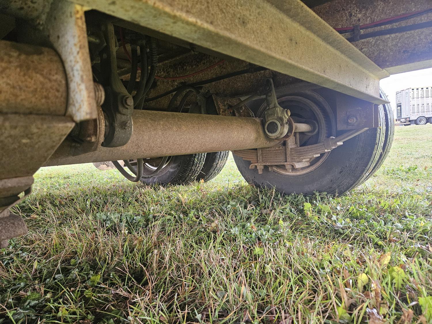 110 inch wide deck, 5 ft beavertail, 5 ft steel fold down ramps, 6 ft x 11 ft step deck, wooden deck w/ rubber mating, 20,000 lb axles, air brakes, rub rails, stake pockets, hydraulic front mount winch, spring ride suspension, 235/80R16 duals