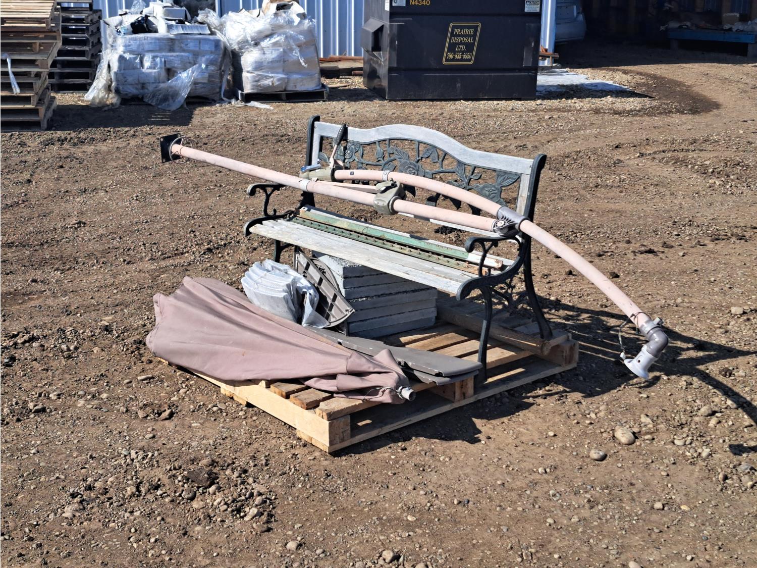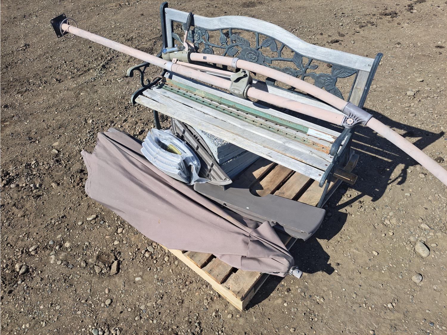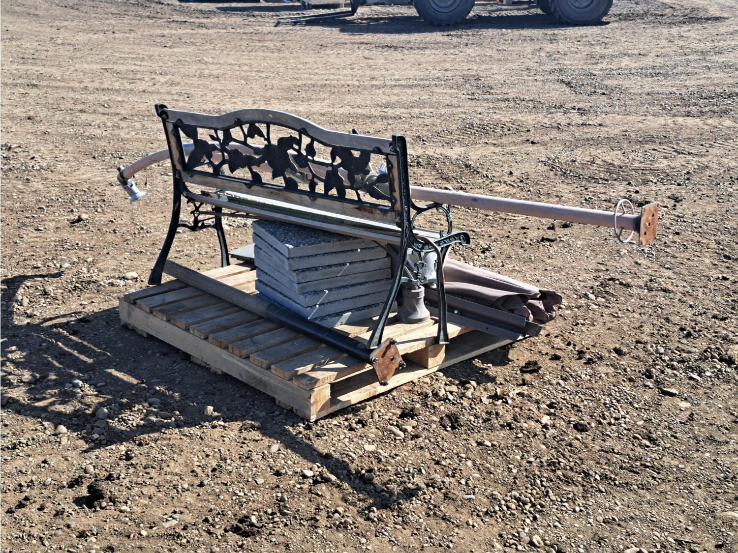 187 (7) Sidewalk Blocks, Park Bench & Unbrella with Stand