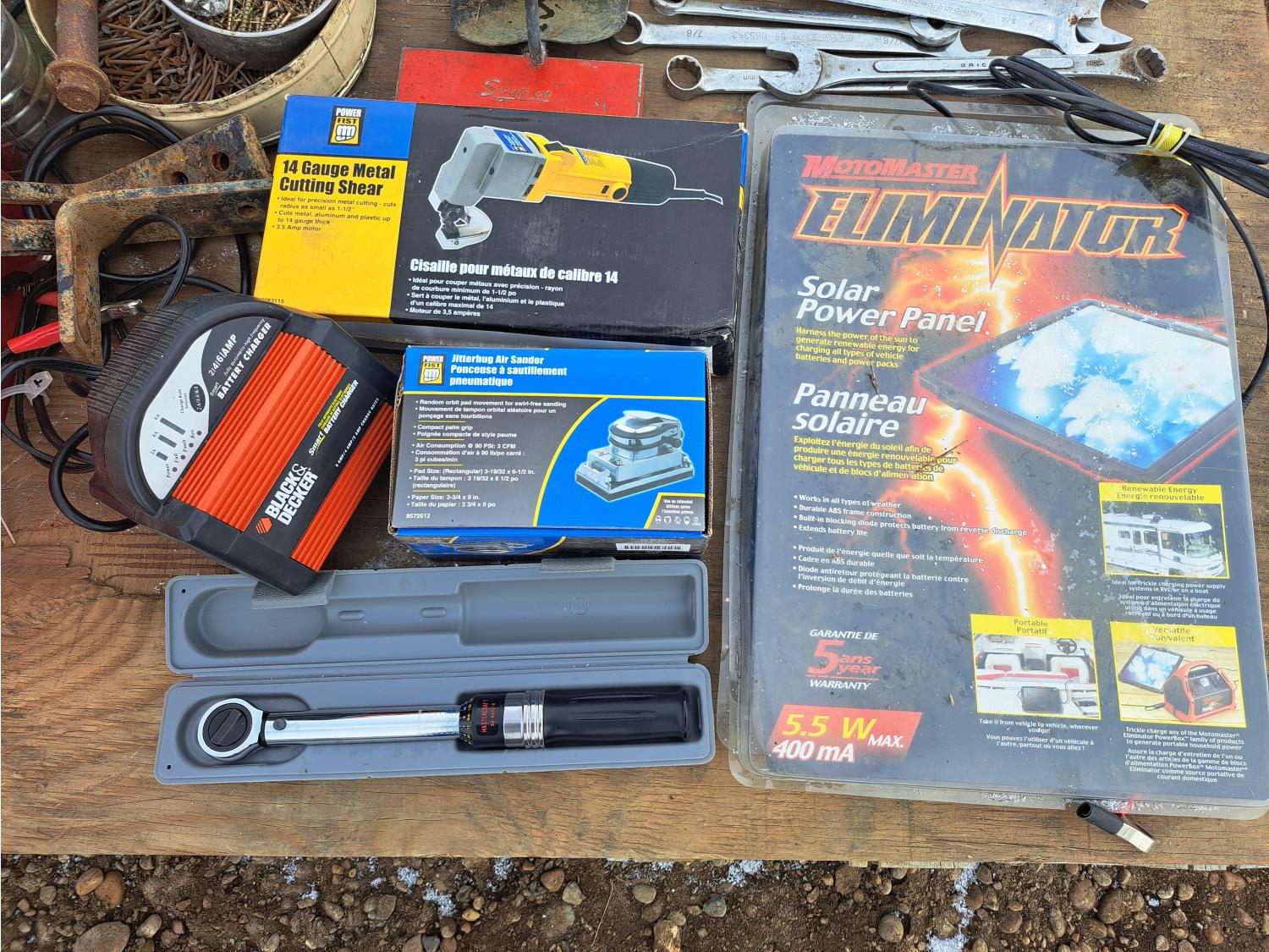 battery charger, torque wrench, air sander and miscellaneous