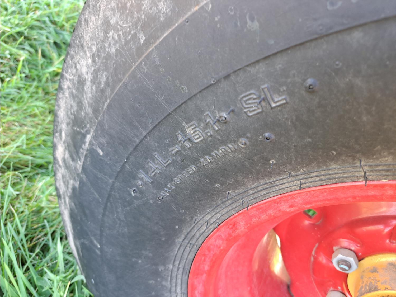 1000 PTO, right discharge, rear bale loader, grain tank, 14L-16.1 tires