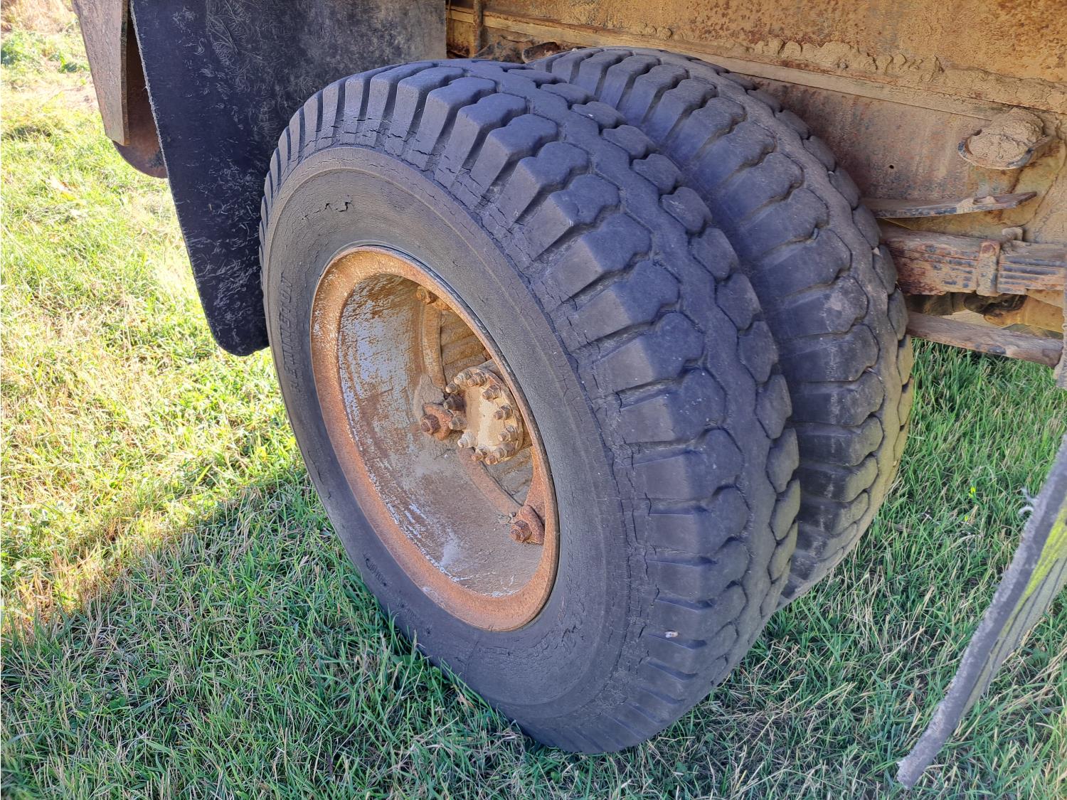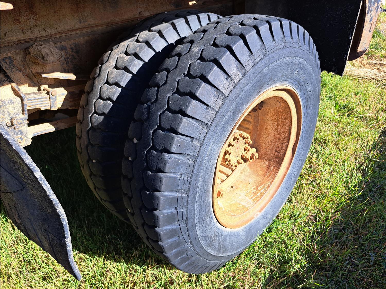 gas engine, 5 speed split transmission, 11 ft x 8 ft deck, 9.00-20 tires