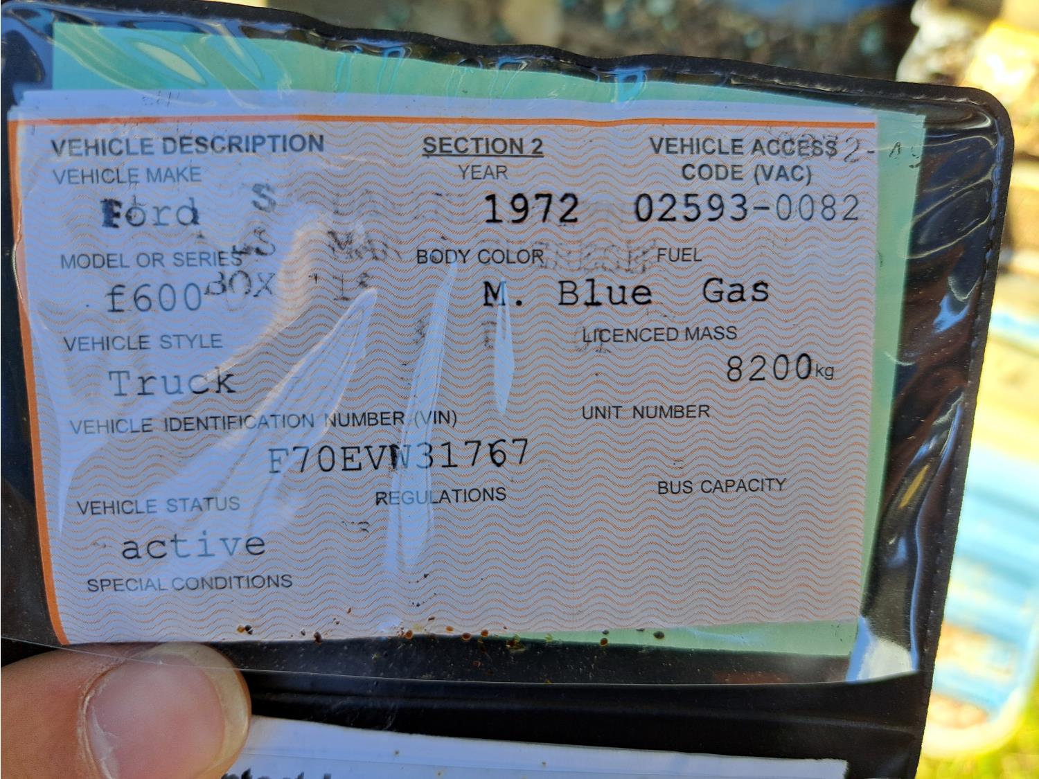 Copy of registration on hand. - Sales Rep: