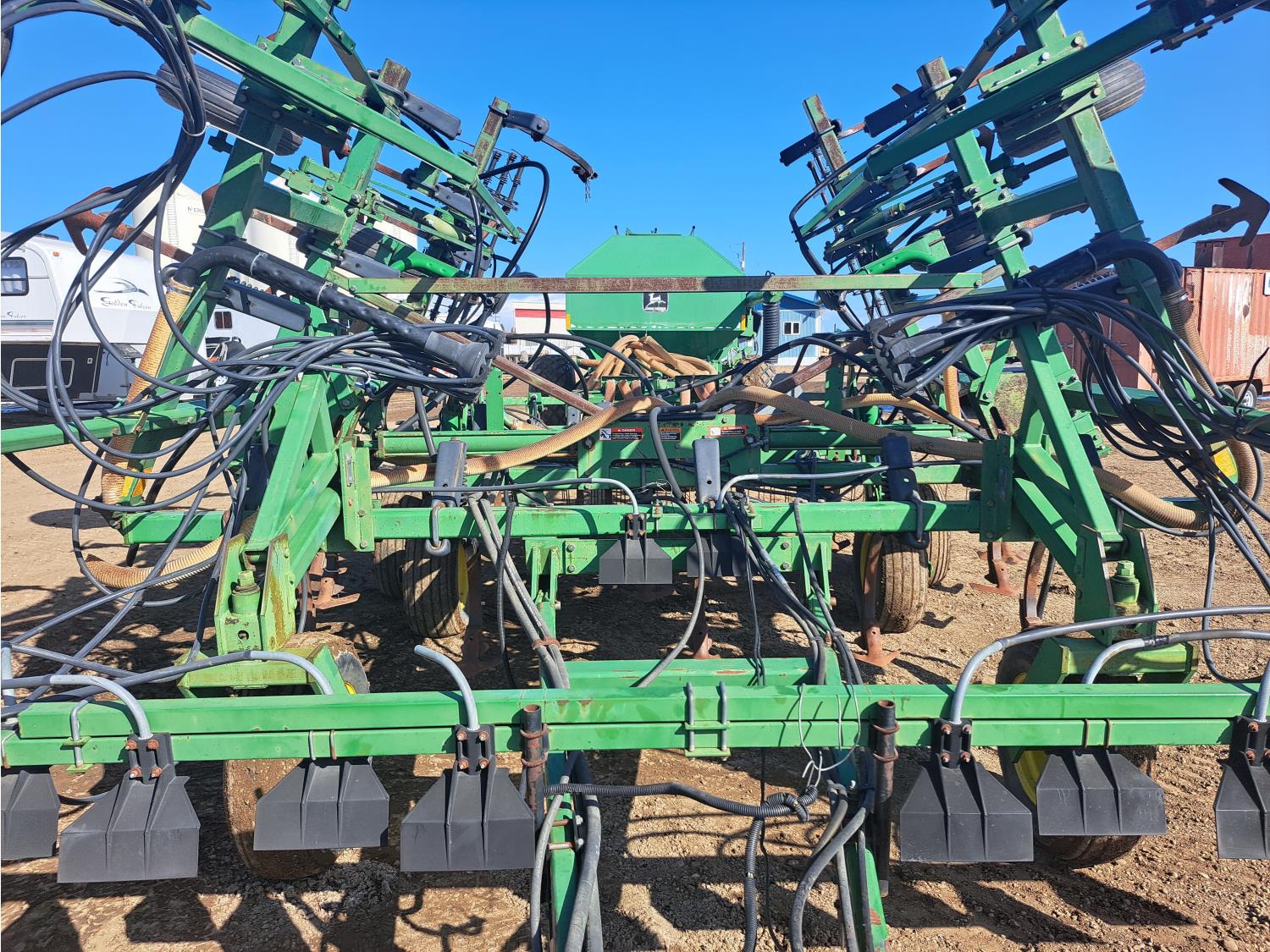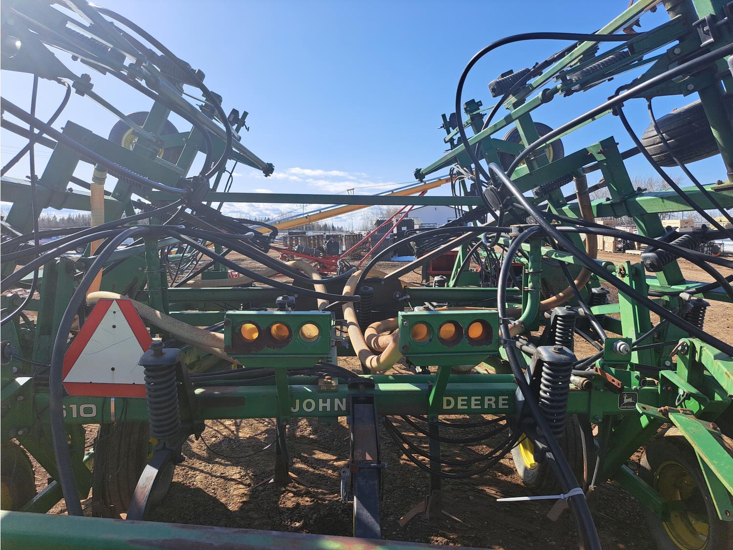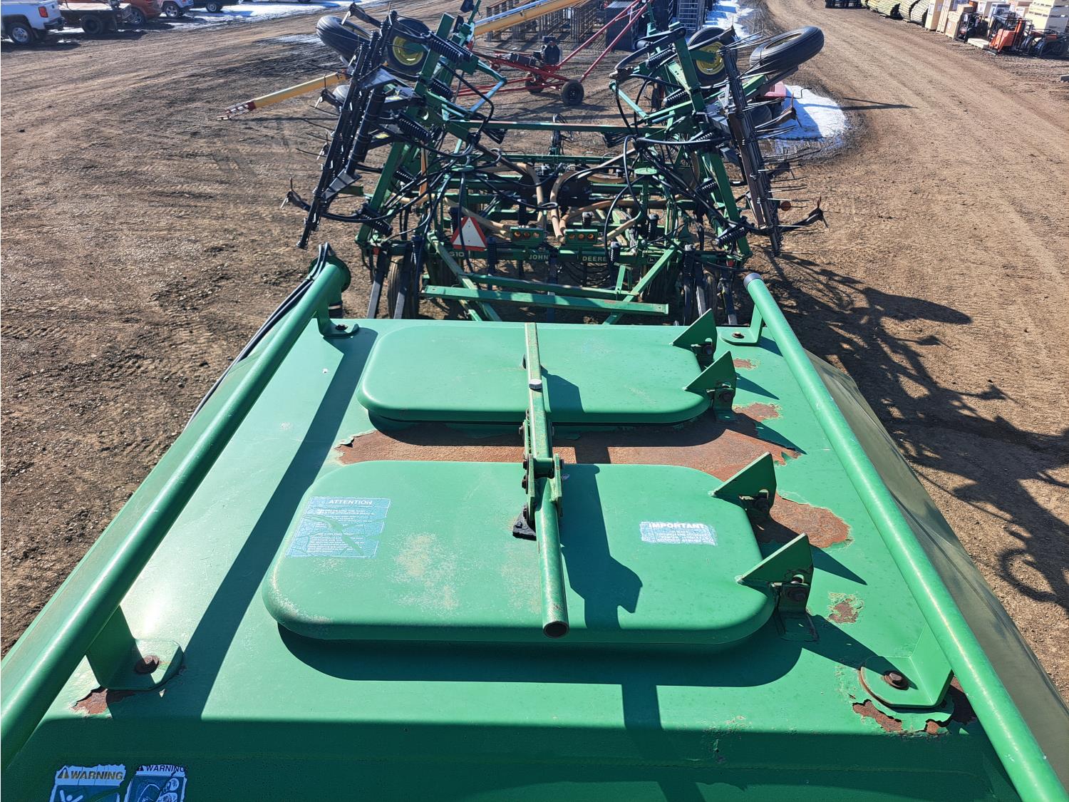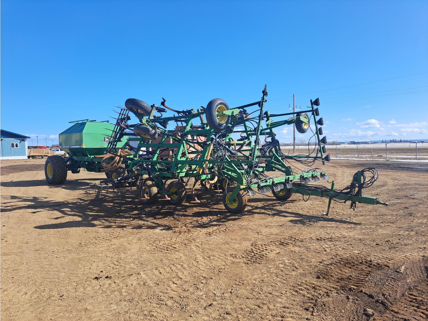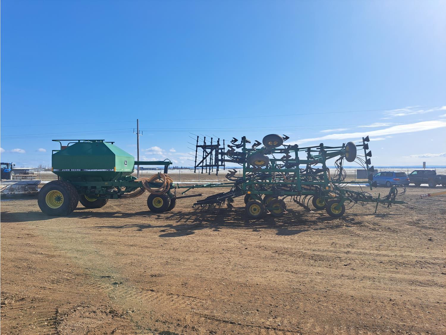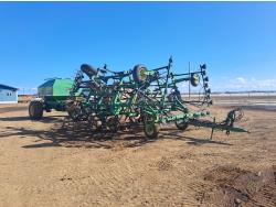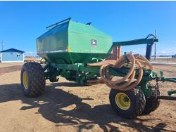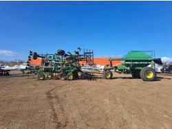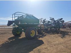 349 John Deere 610 27 Ft Air Drill with John Deere 787 Tow Behind Air Cart