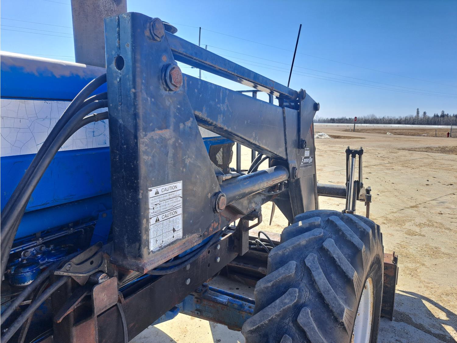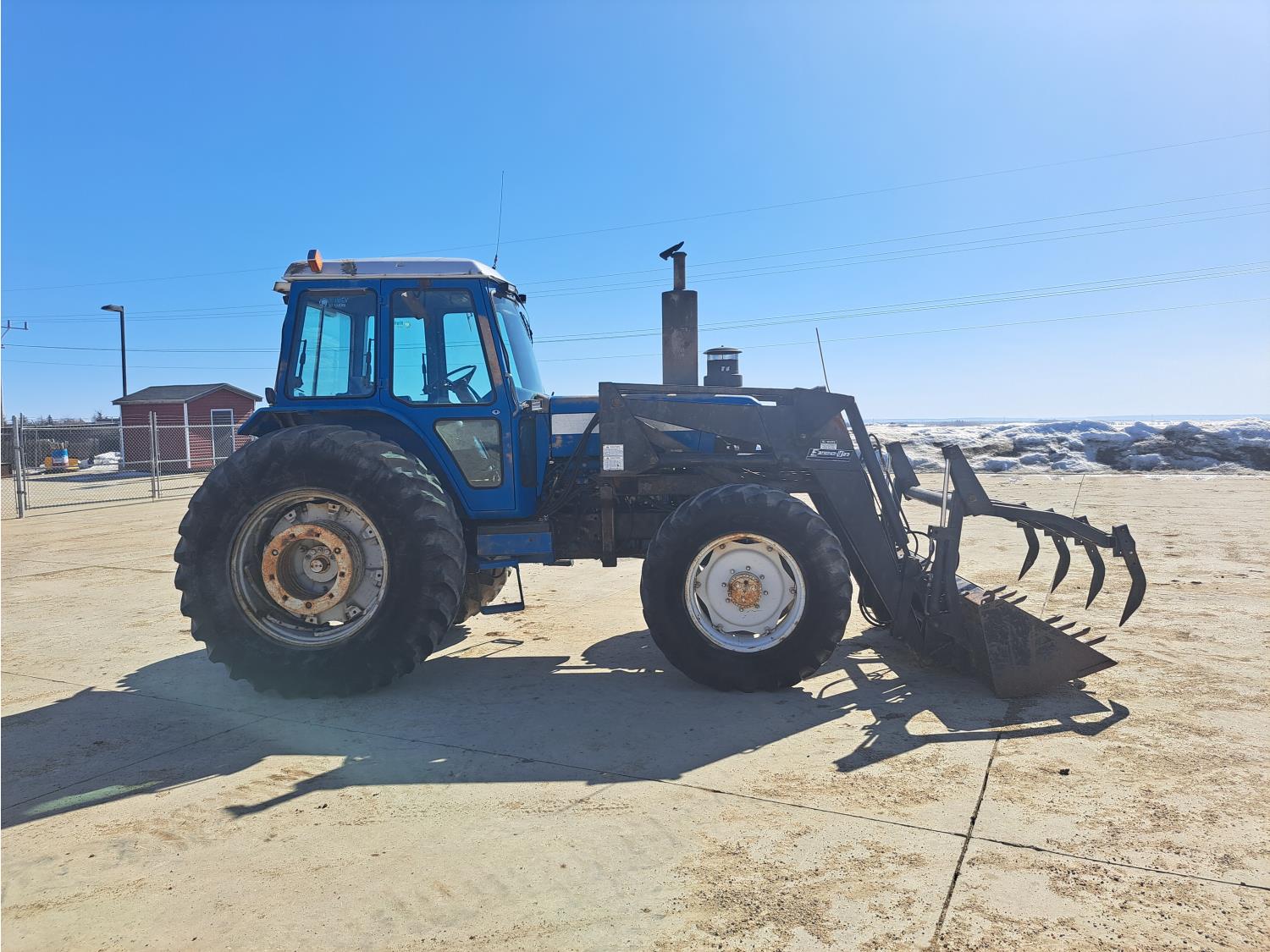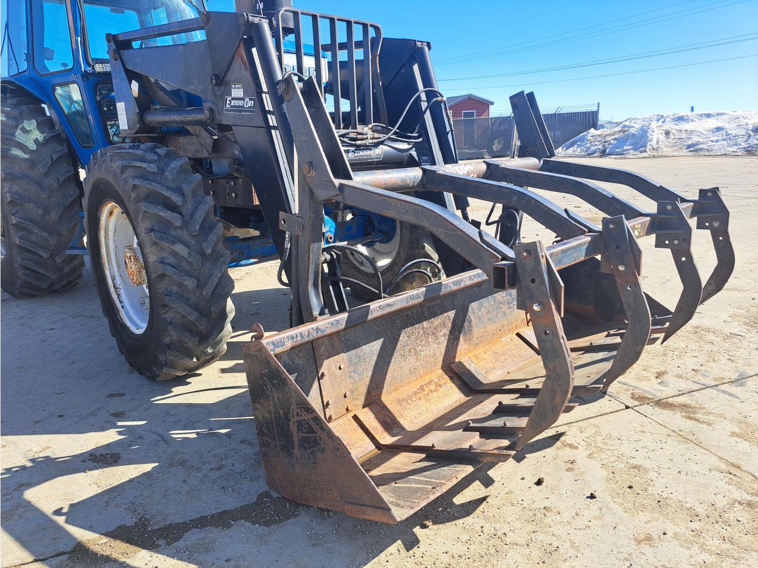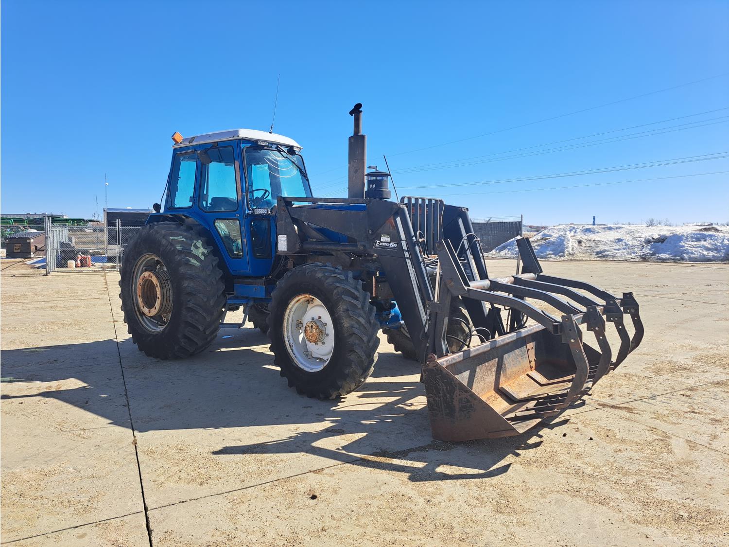 Ezee-on 2105 loader, grapple, 6.6 L 6 cylinder 160 HP, engine, 140 PTO HP, 16 speed partial power shift transmission, 15.3 GPM hydraulic pump, cab, 540/1000 PTO, 3 rear hydraulic outlets, 3 Pt Hitch ready, rear wheel weights, 380/85R20 front tires, 520/85R38 rear tires