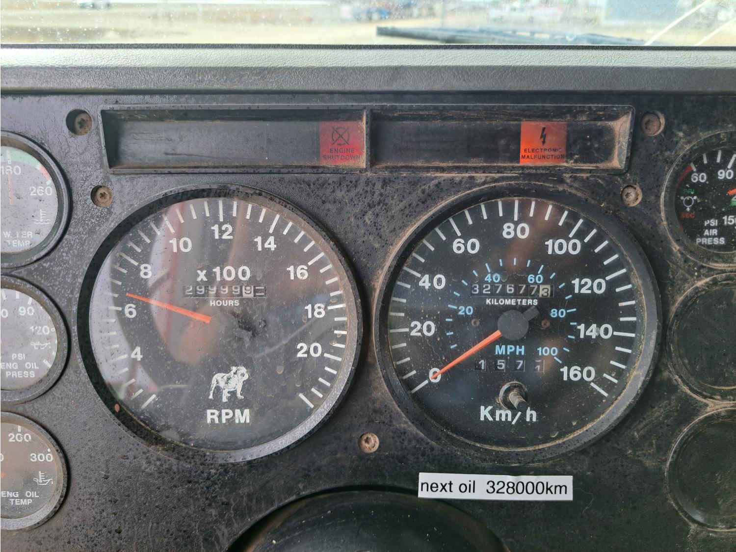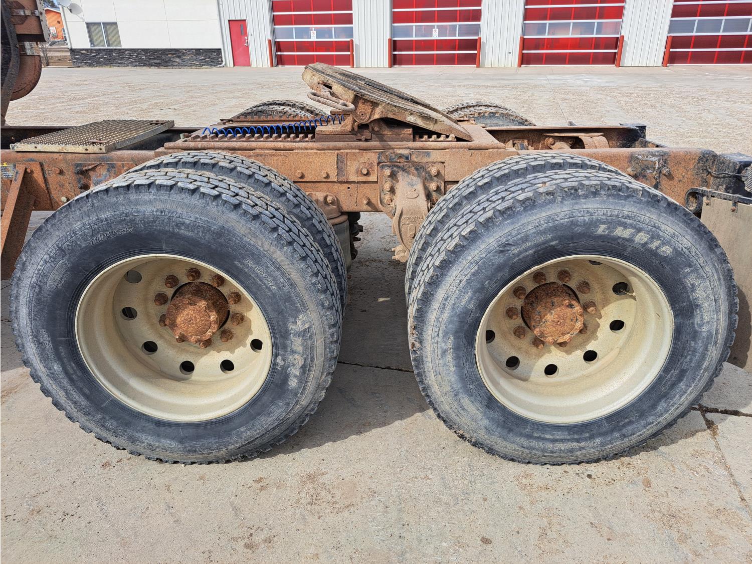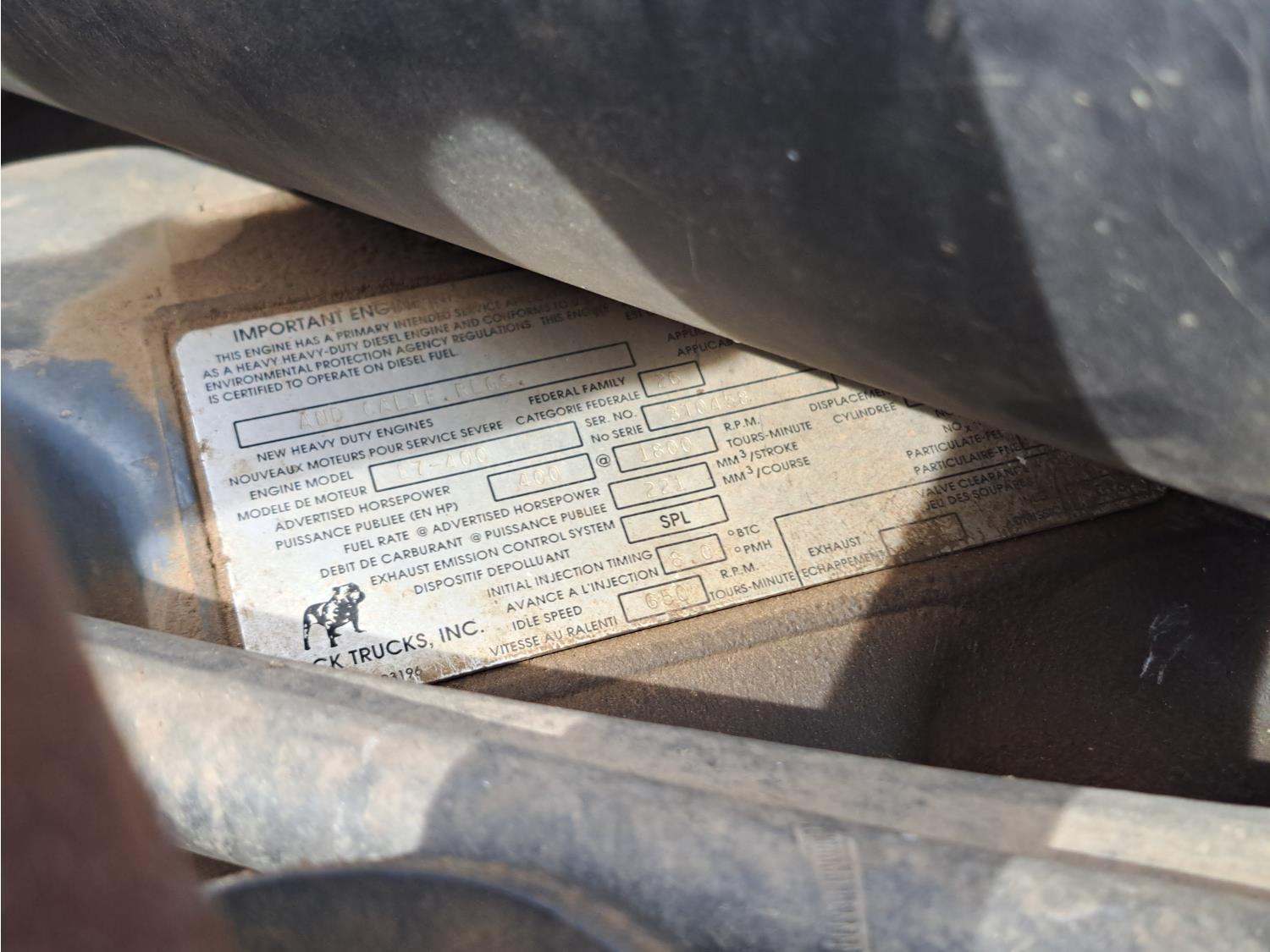 Mack 12.0 L 6 cylinder diesel engine, engine brake, Eaton 18 speed manual transmission, flat top sleeper, cruise control, radio, air ride cab, air ride suspension, 46,000 lb rear axles, 204 inch WB, 11R24.5 tires