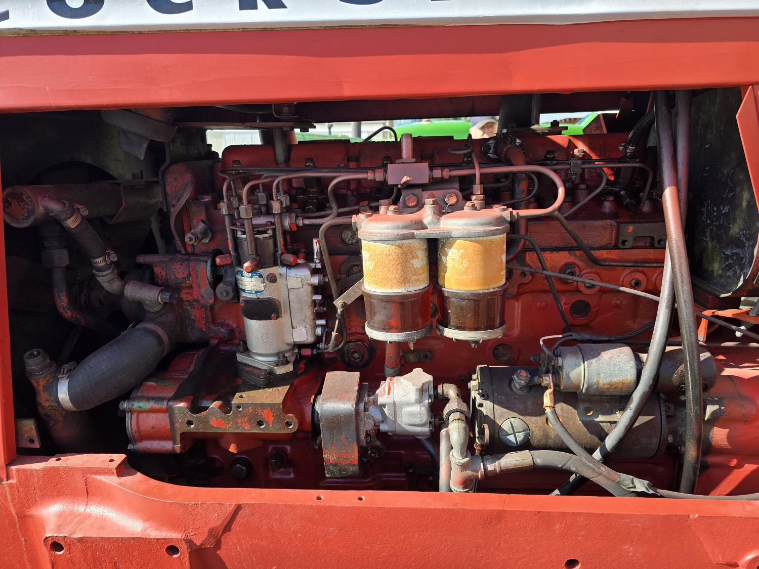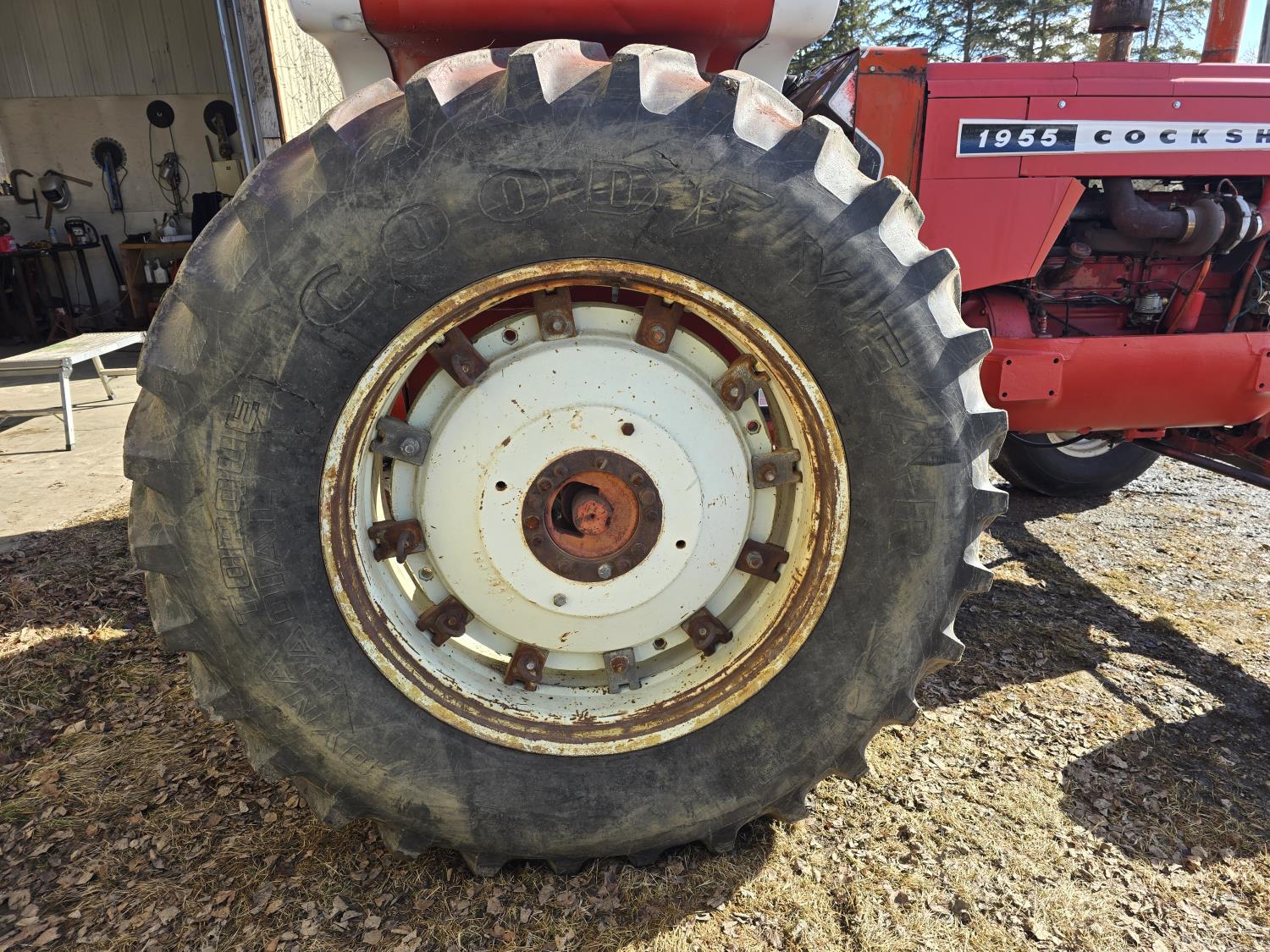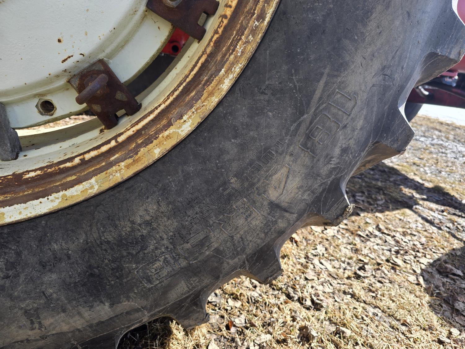 Perkins 5.1 L 6 cylinder diesel engine, 18 speed partial power shift transmission, 540/1000 PTO, 2 rear hydraulic outlets, 11.00-16 front tires, 18.4R38 rear tires, open station w/canopy