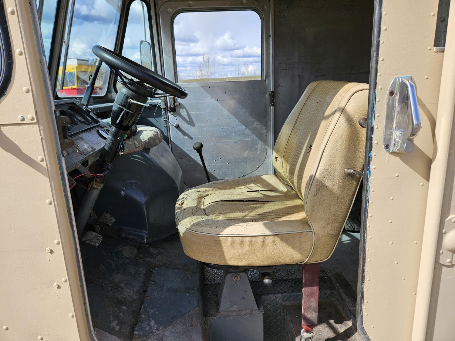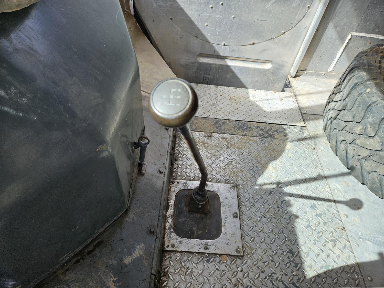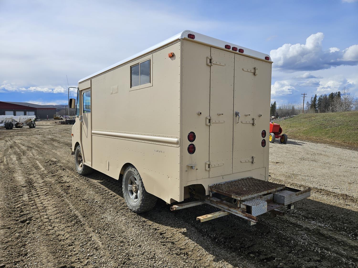 292 cu in, 6 cylinder, gas, 4 speed manual transmission, 410 carrier rear end, ceiling fan, leather captain seat not installed, diesel furnace not installed, spare tire, 33X12.50R17 tires