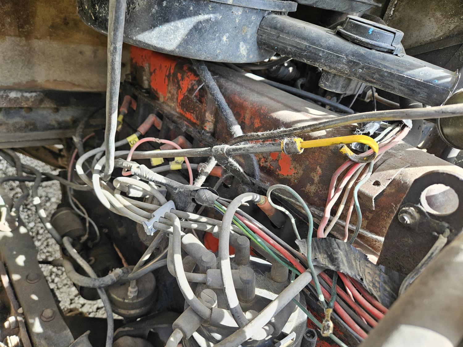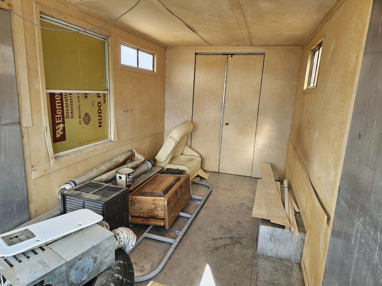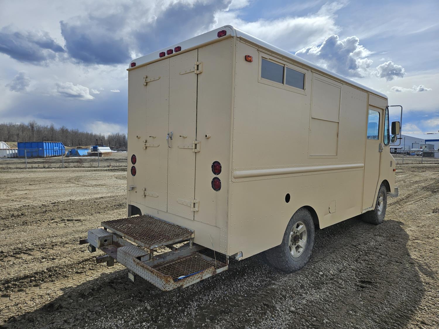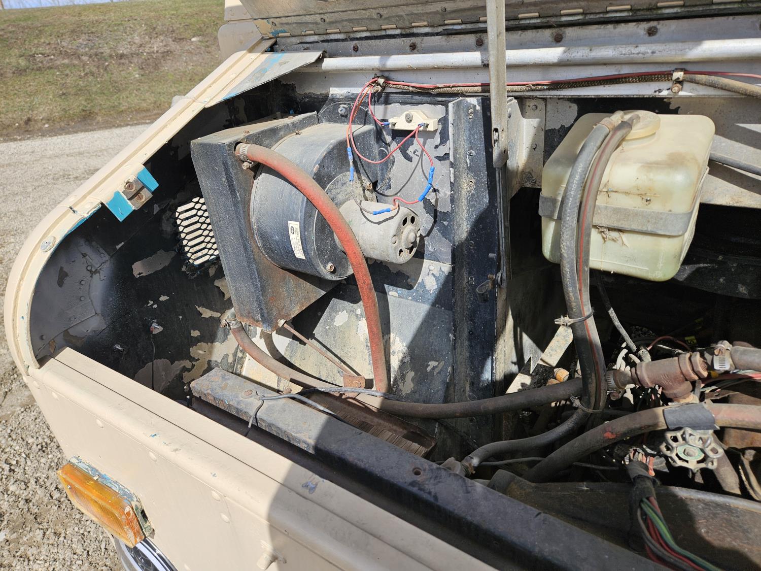 292 cu in, 6 cylinder, gas, 4 speed manual transmission, 410 carrier rear end, ceiling fan, leather captain seat not installed, diesel furnace not installed, spare tire, 33X12.50R17 tires