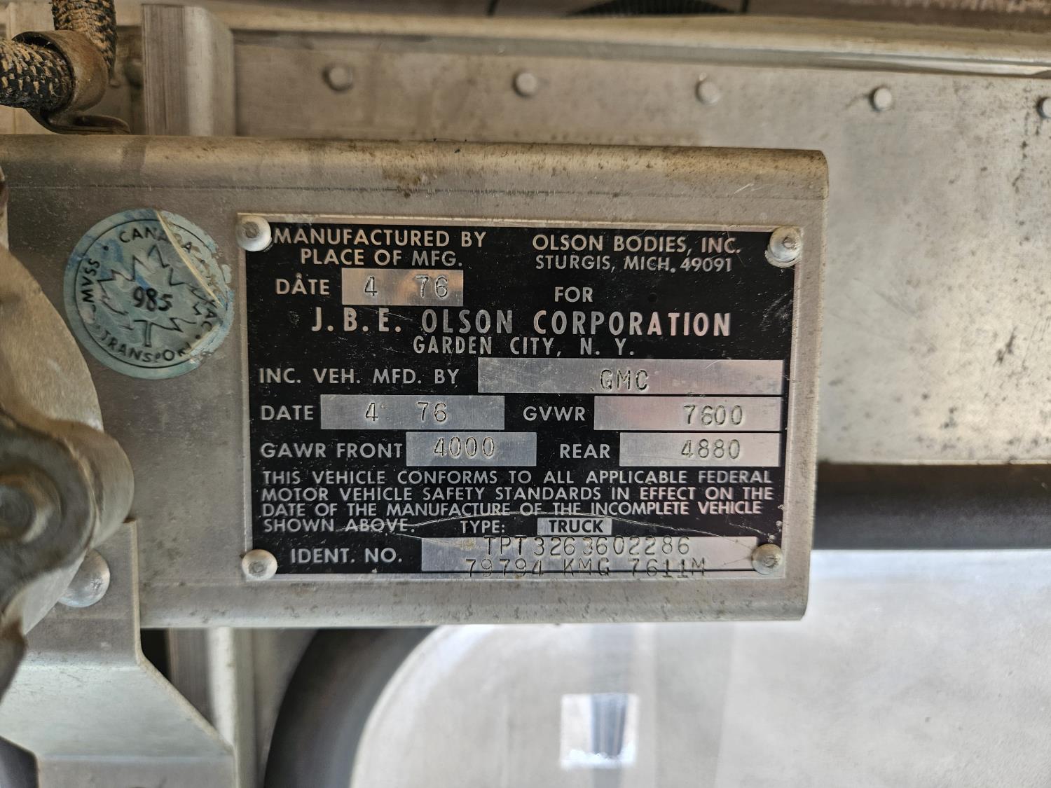 134 1976 GMC Olson 2WD Cargo Van