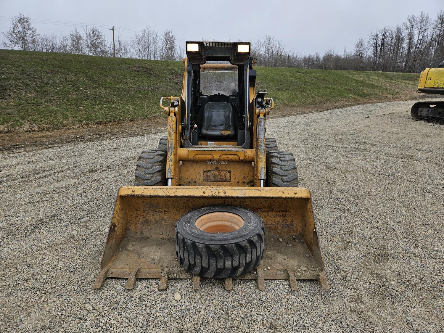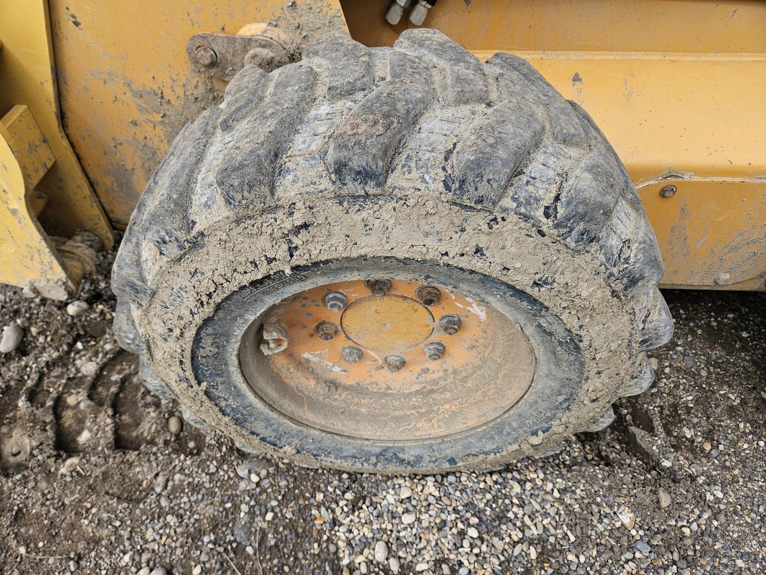 Enclosed cab, pilot controls, diesel engine, rear hydraulic stabilizer bar, 72 inch toothed bucket, manual coupler, high flow hydraulics, spare tire, 12-16.5 tires
