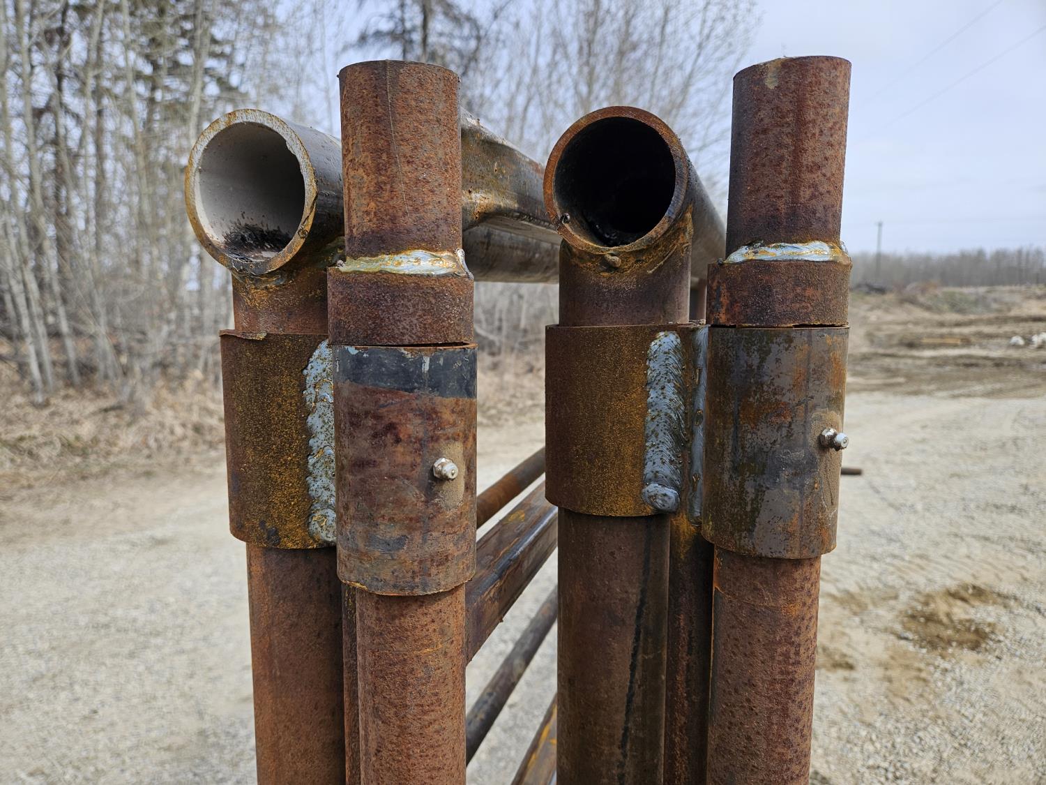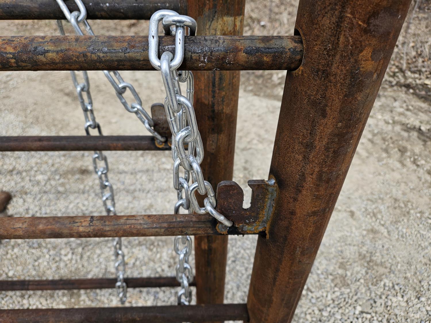 2-7/8 pipe frame, (4) uprights, (5) 1 inch bars, 60 inch feet, 65 inch height, greaseable hinges
