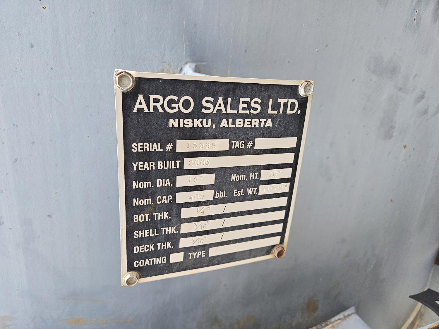 12 ft x 20 ft, side access ladder, level gauge