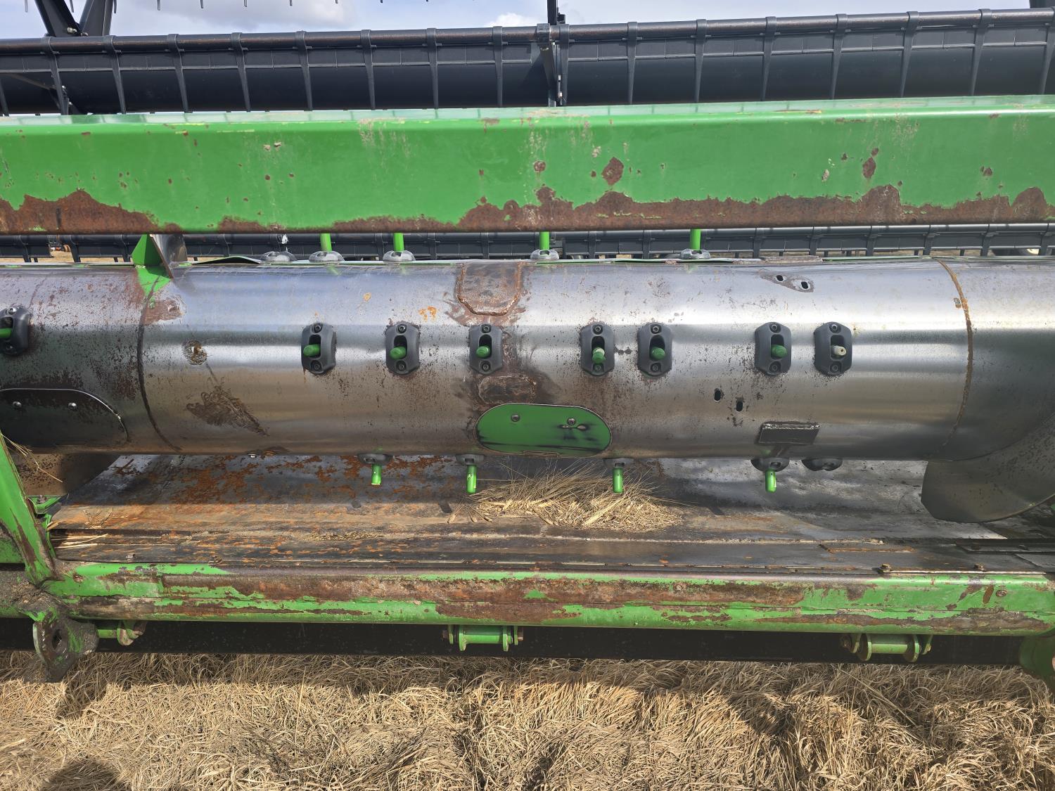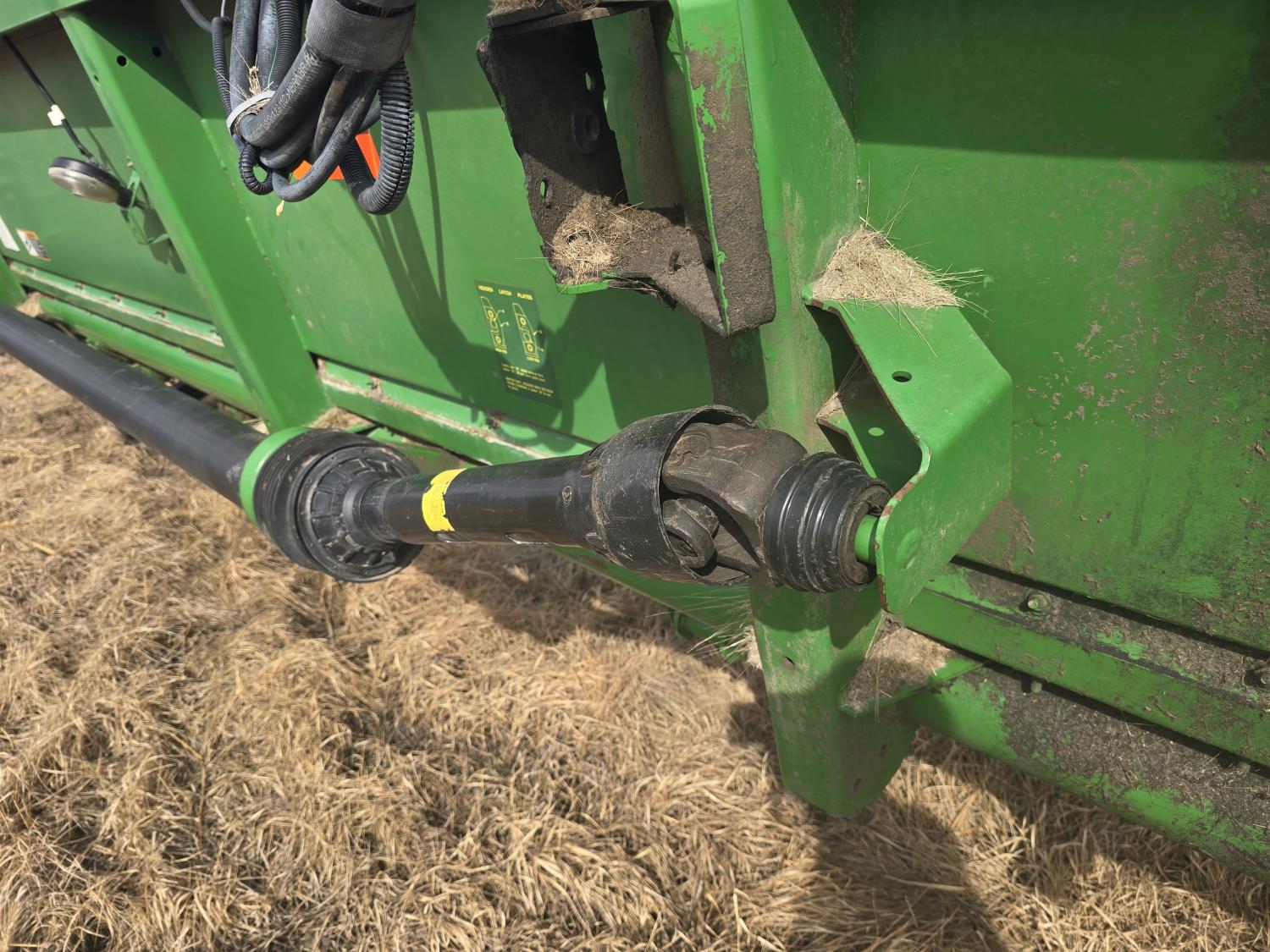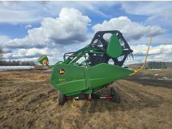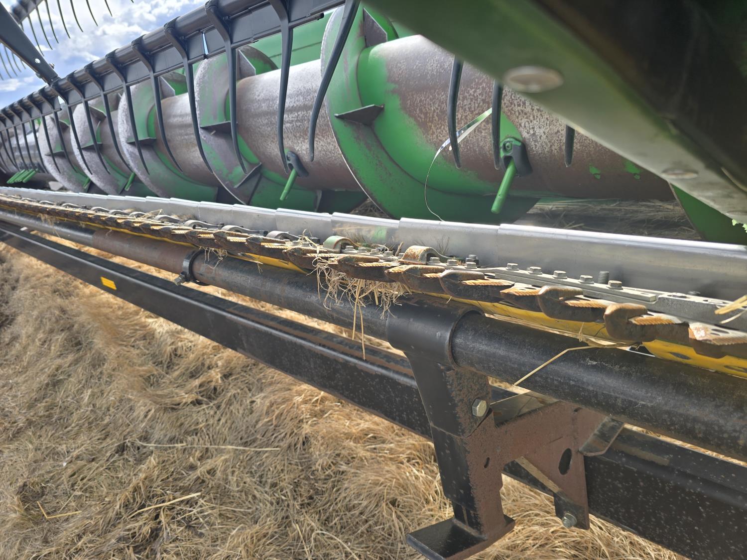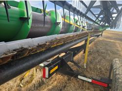 pickup reel, fore & aft, poly skid plates, full finger auger, single knife drive, Elmers transport, came off S670 combine