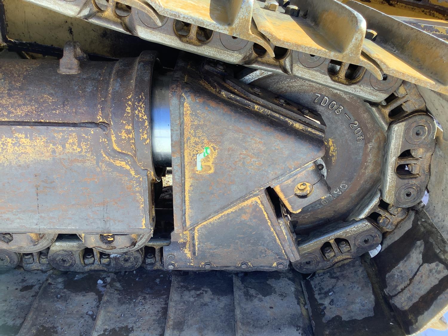 3 speed powershift transmission, differential steering, CAT Lub link undercarriage rails, ROPS canopy, 13 Ft 6 way angle dozer, drawbar, factory enclosed cab, heat, A/C, CAT Acert C9 engine, 31 inch track pads