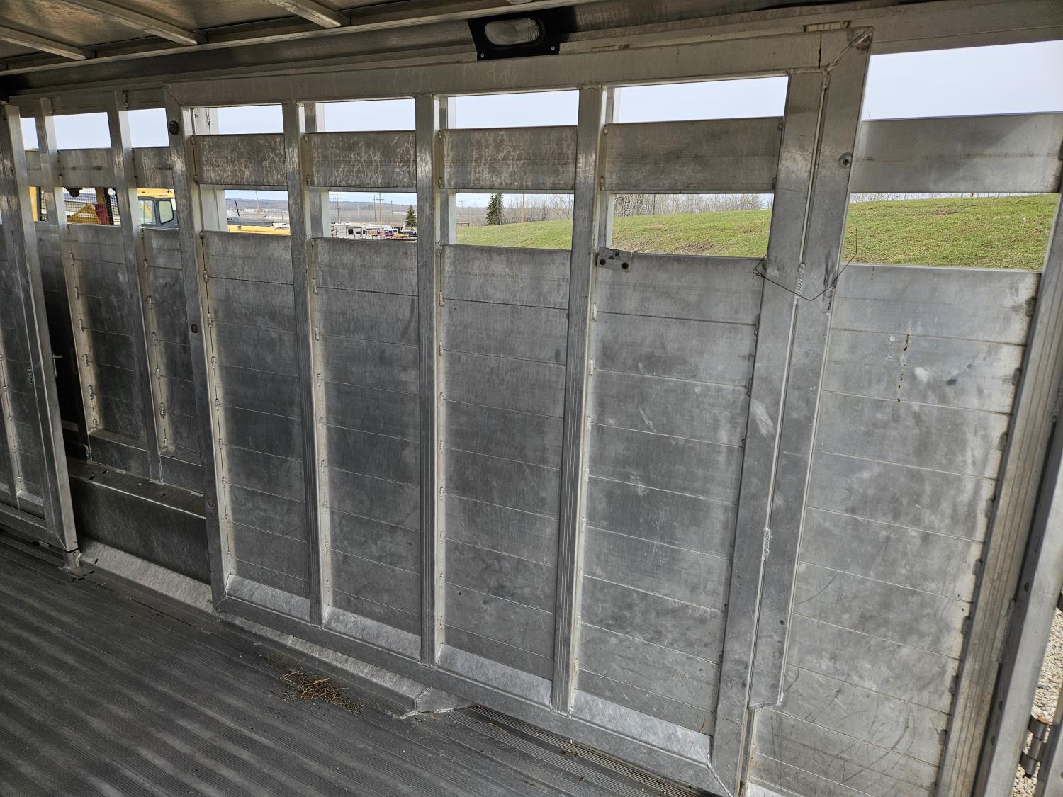 7500 lb axles, spring suspension, full swing rear door, 87 inch interior width, 87 inch interior height, left hand 36 inch man door, (2) divider gates (1) with sliding door, G/N storage, 235/85R16 tires