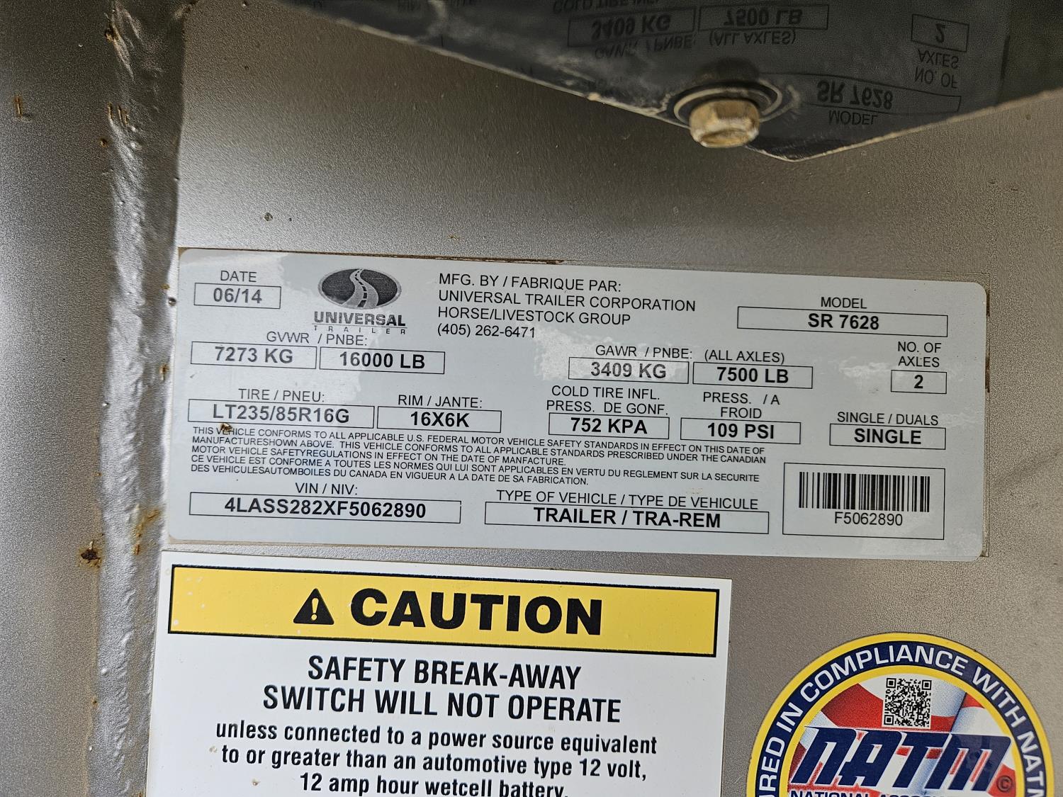 157 2015 Sooner 28 Ft T/A G/N Aluminum Stock Trailer