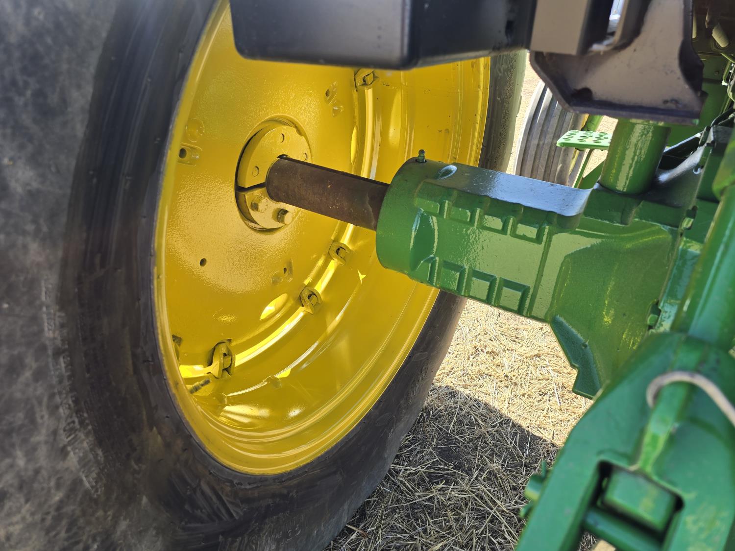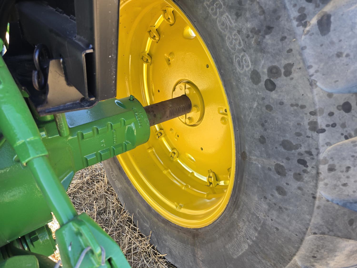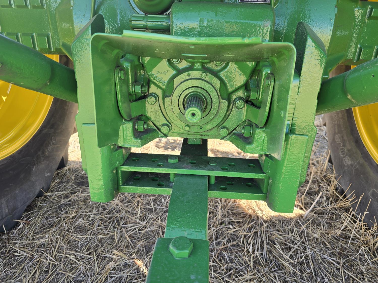 7.6 L 6 cylinder 158 HP, engine, 140 PTO HP, 16 speed Quad Range partial power shift transmission, cab, A/C, radio, heat, in cab joystick with mid mount hydraulic couplers for loader, LED work lights, 540/1000 PTO, 3 point hitch, 2 rear hydraulic outlets, hydraulic return line, 11.00-16 front tires, 20.8-38 rear tires