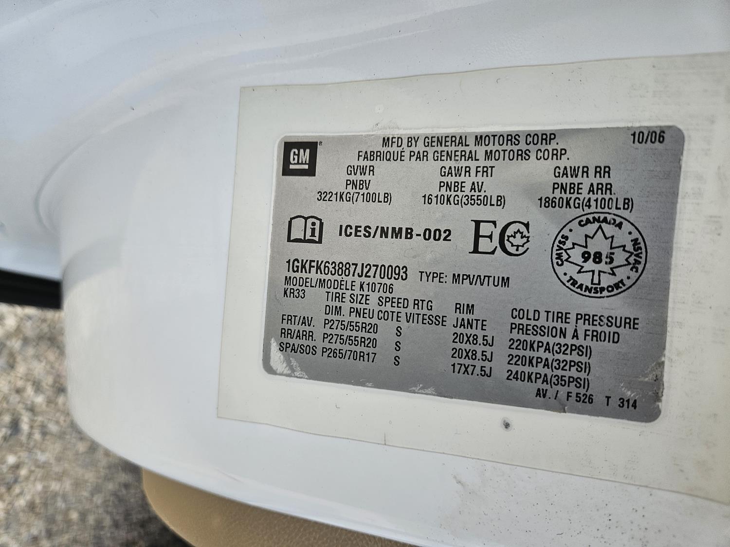 1GKFK63887J270093
