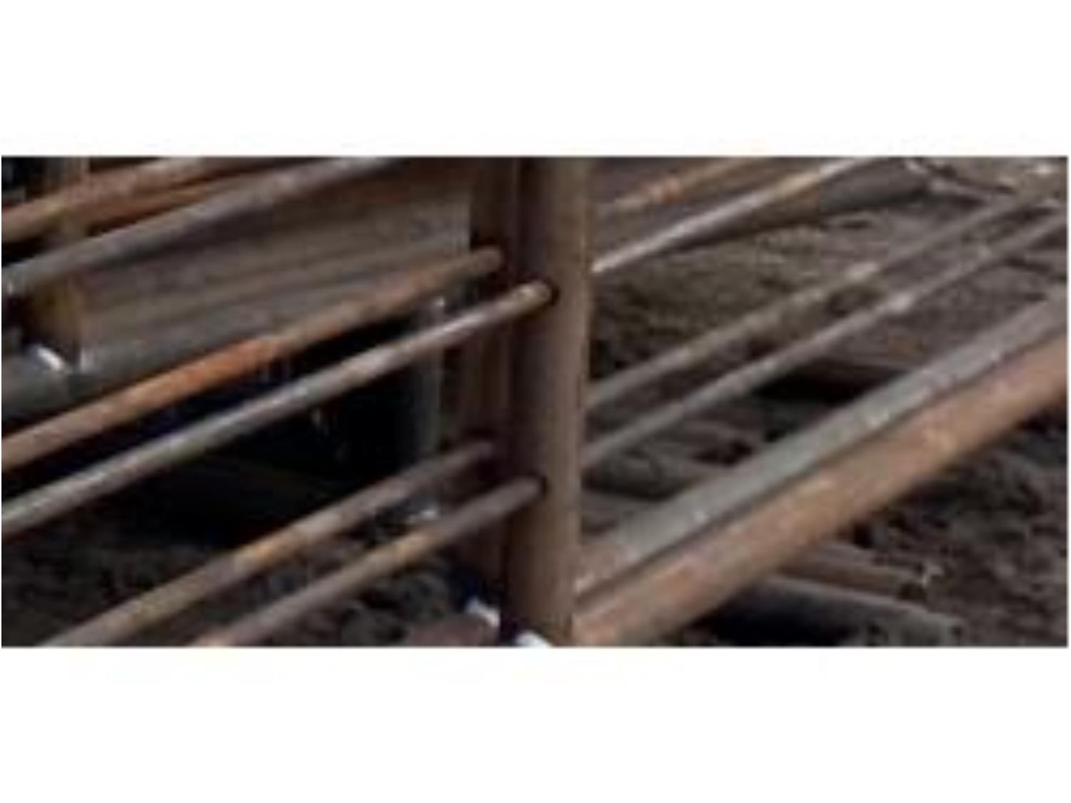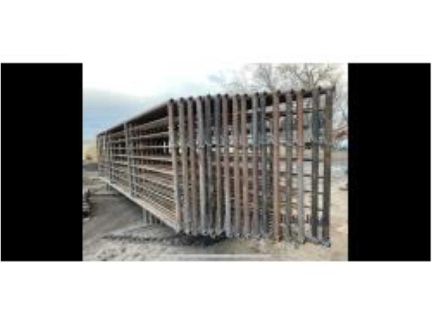7 ft high, 2-7/8 inch frame, (8) 1 inch sucker rod rails with 7-3/4 inch spacing, double connector chains one end, professionally welded, all CNC machine locks and holes for rods