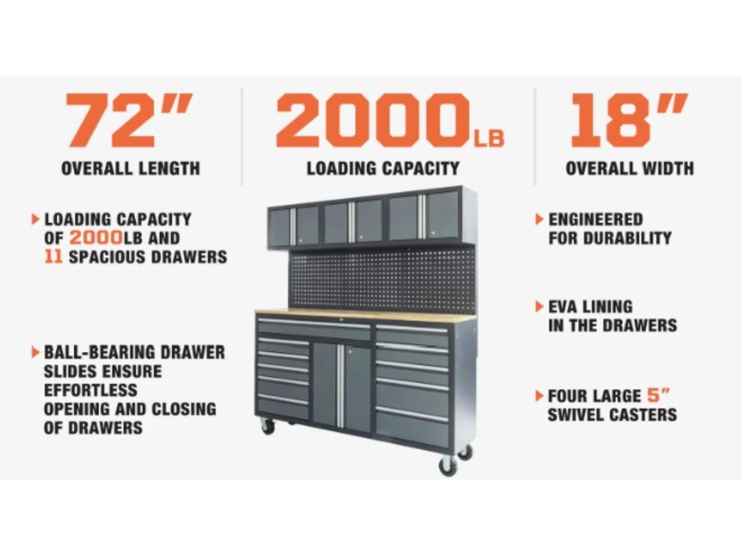 59 StanForge WBC73 72” 11-Drawer Workstation Cabinet Combo with Pegboard