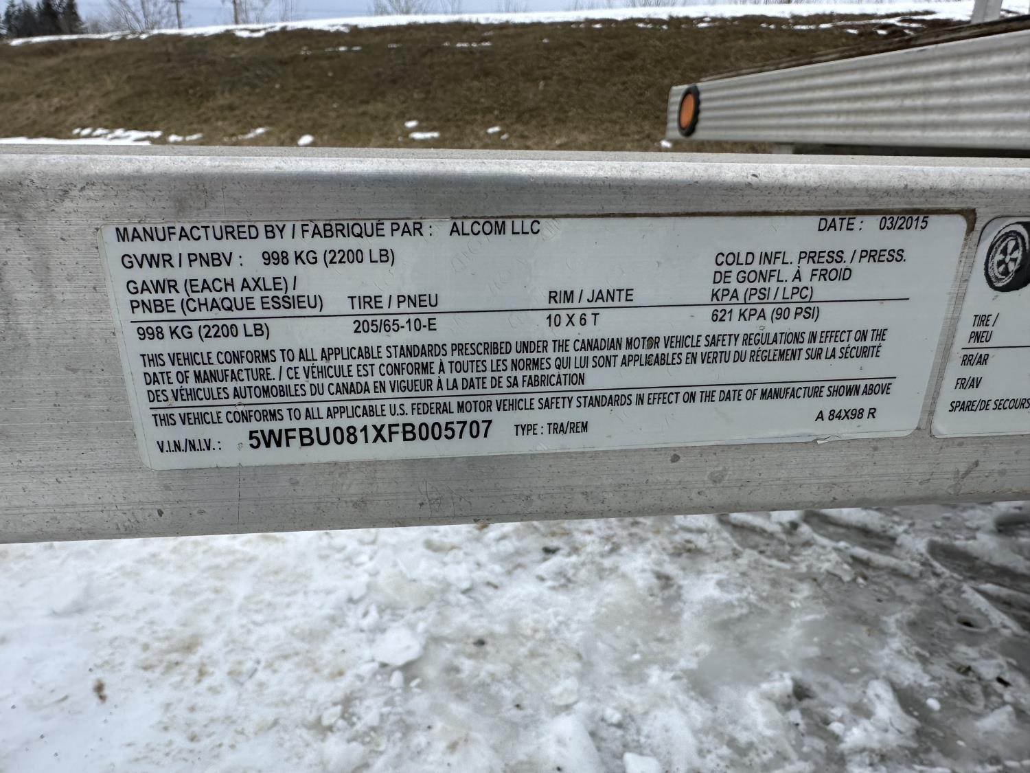 160 2015 Alcom 8 Ft S/A Aluminum Flat Deck Utility Trailer