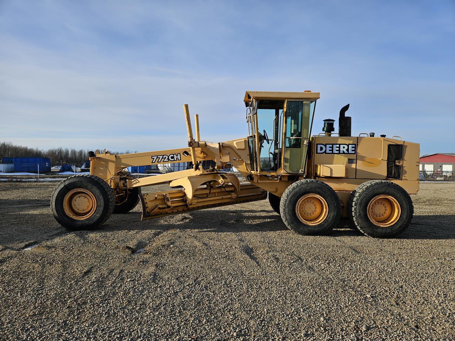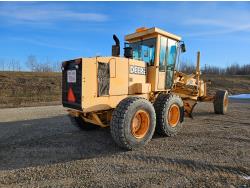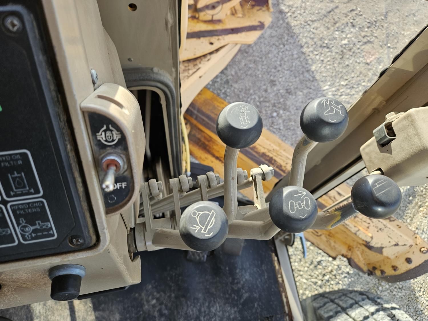 Enclosed cab, A/C, 14 Ft moldboard, 6 cylinder diesel engine 8 speed powershift transmission, 17.5R25 tires
