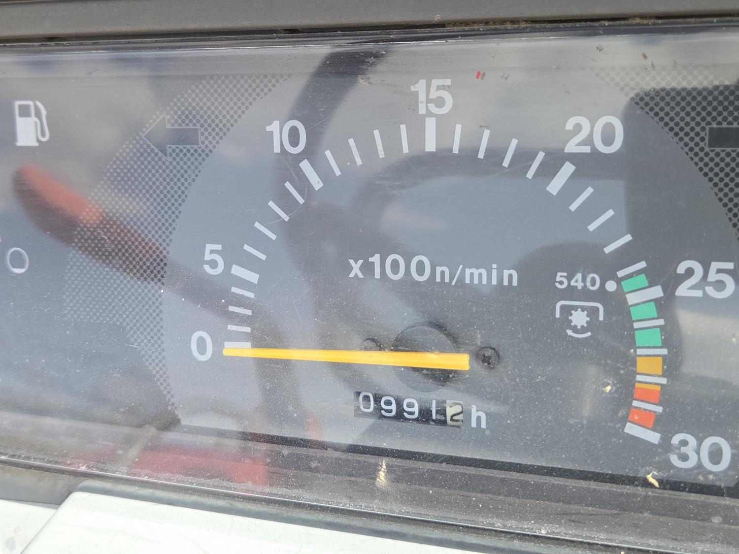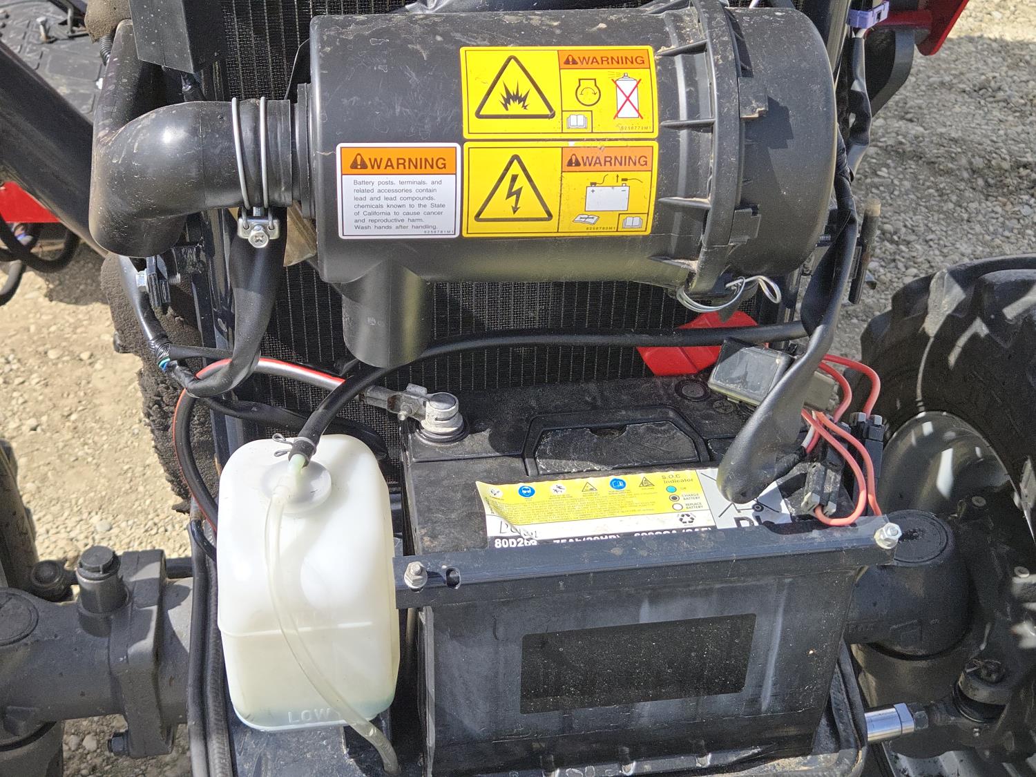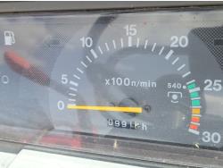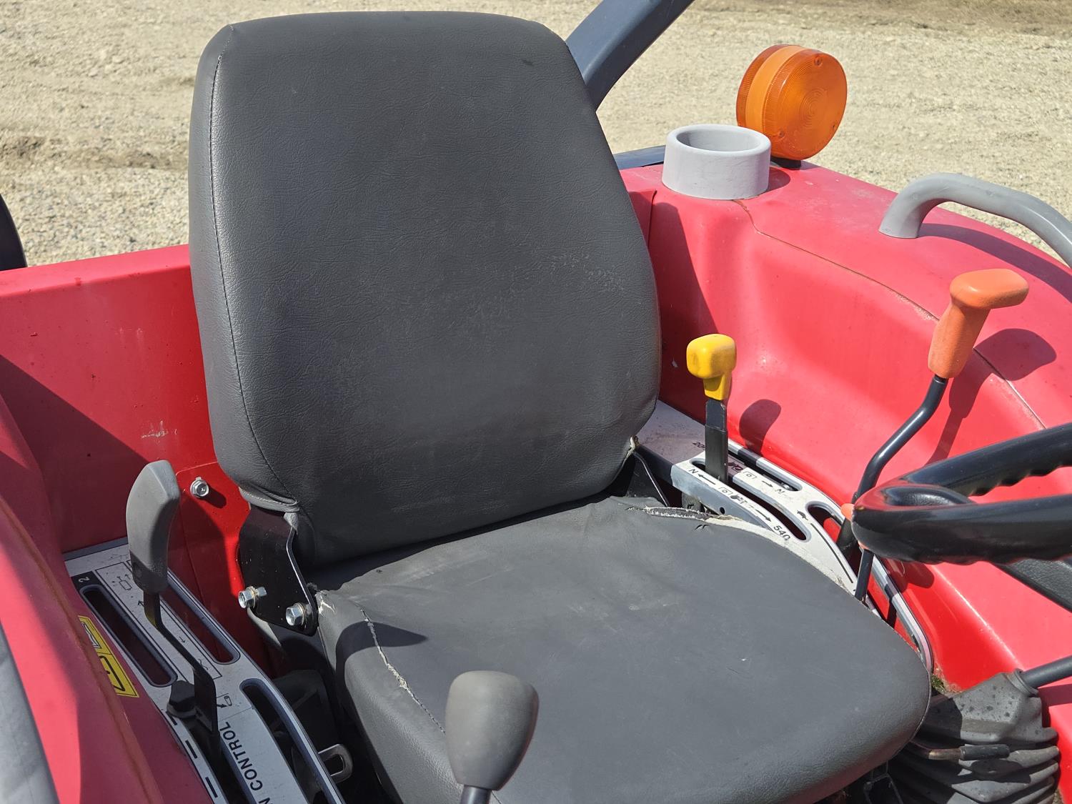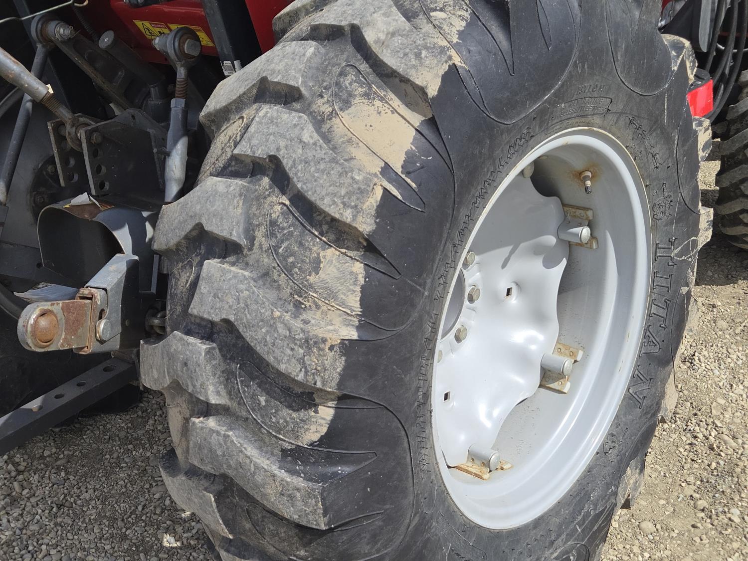 Massey Ferguson DL120 loader, 72 inch bucket, Iseki 1.5 L 3 cylinder 33 HP, diesel engine, 26 PTO HP, 8 speed manual transmission with creeper gear, open station platform, shuttle shift, rear differential lock, joystick, 540 PTO, 3 point hitch, rear wheel weights, 10-16.5 front tires, 14.9-24 rear tires