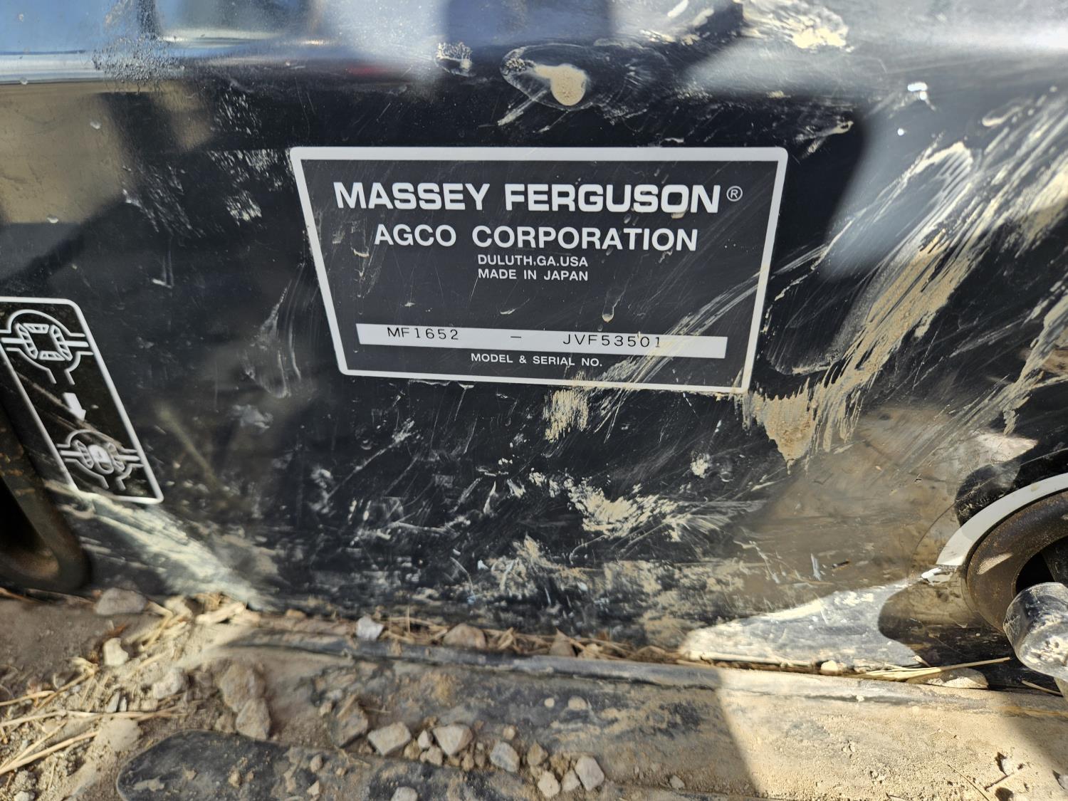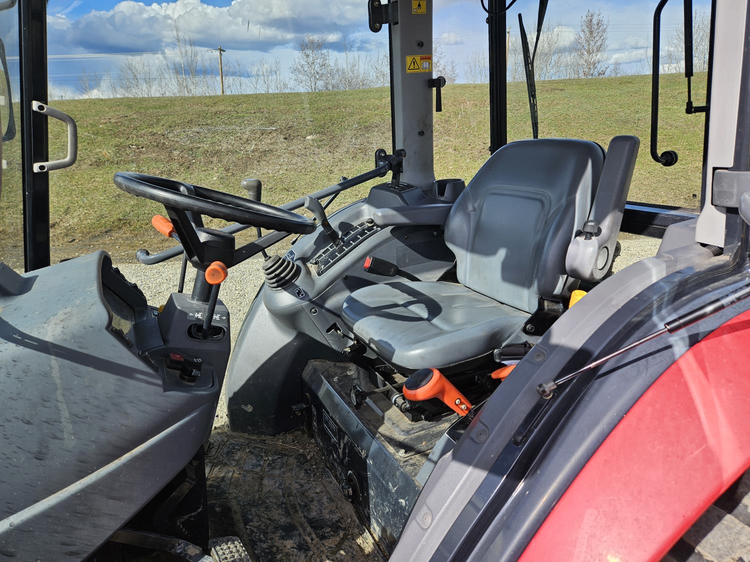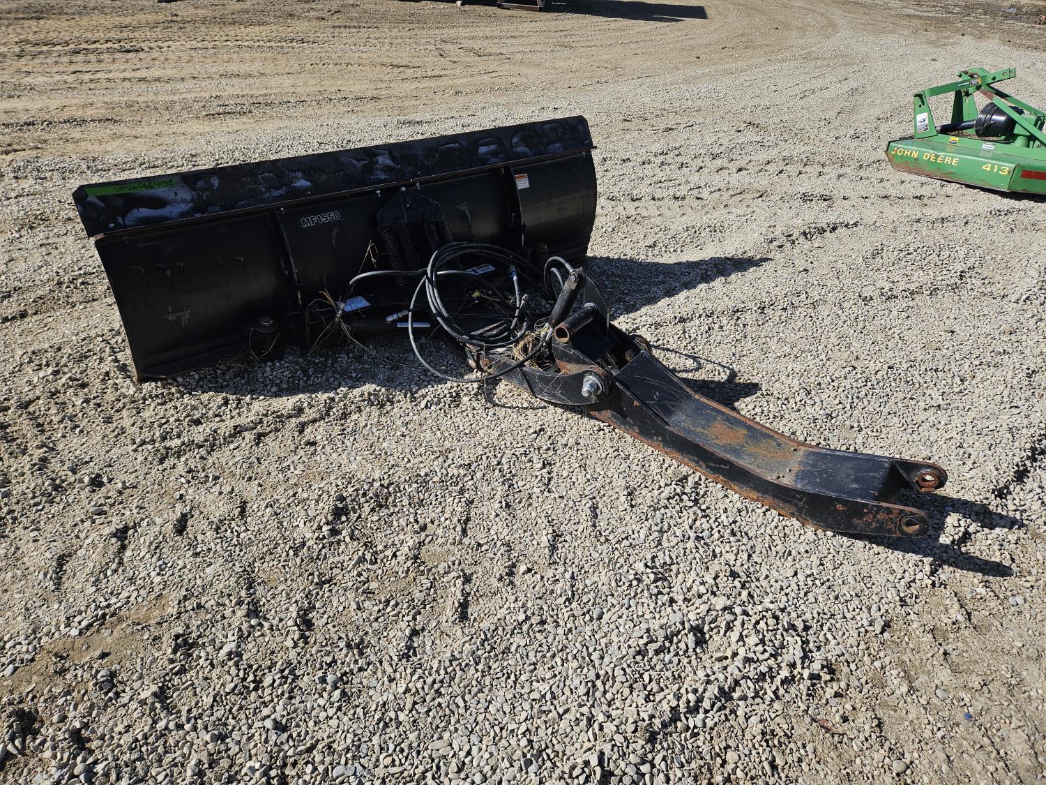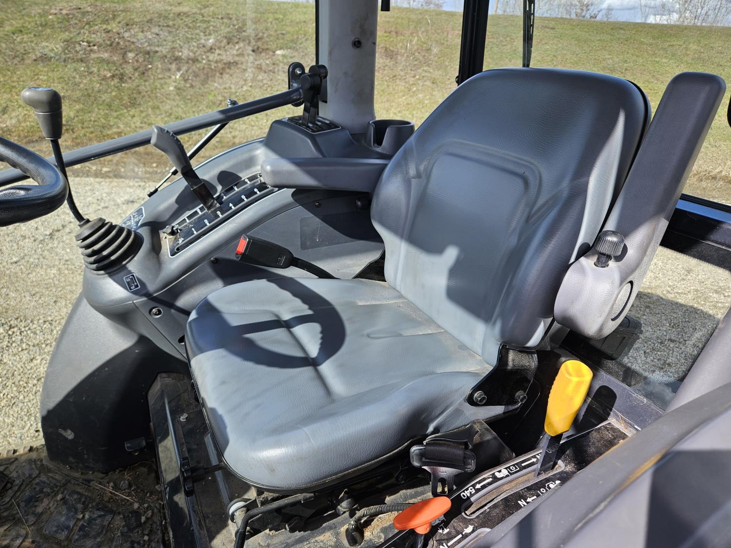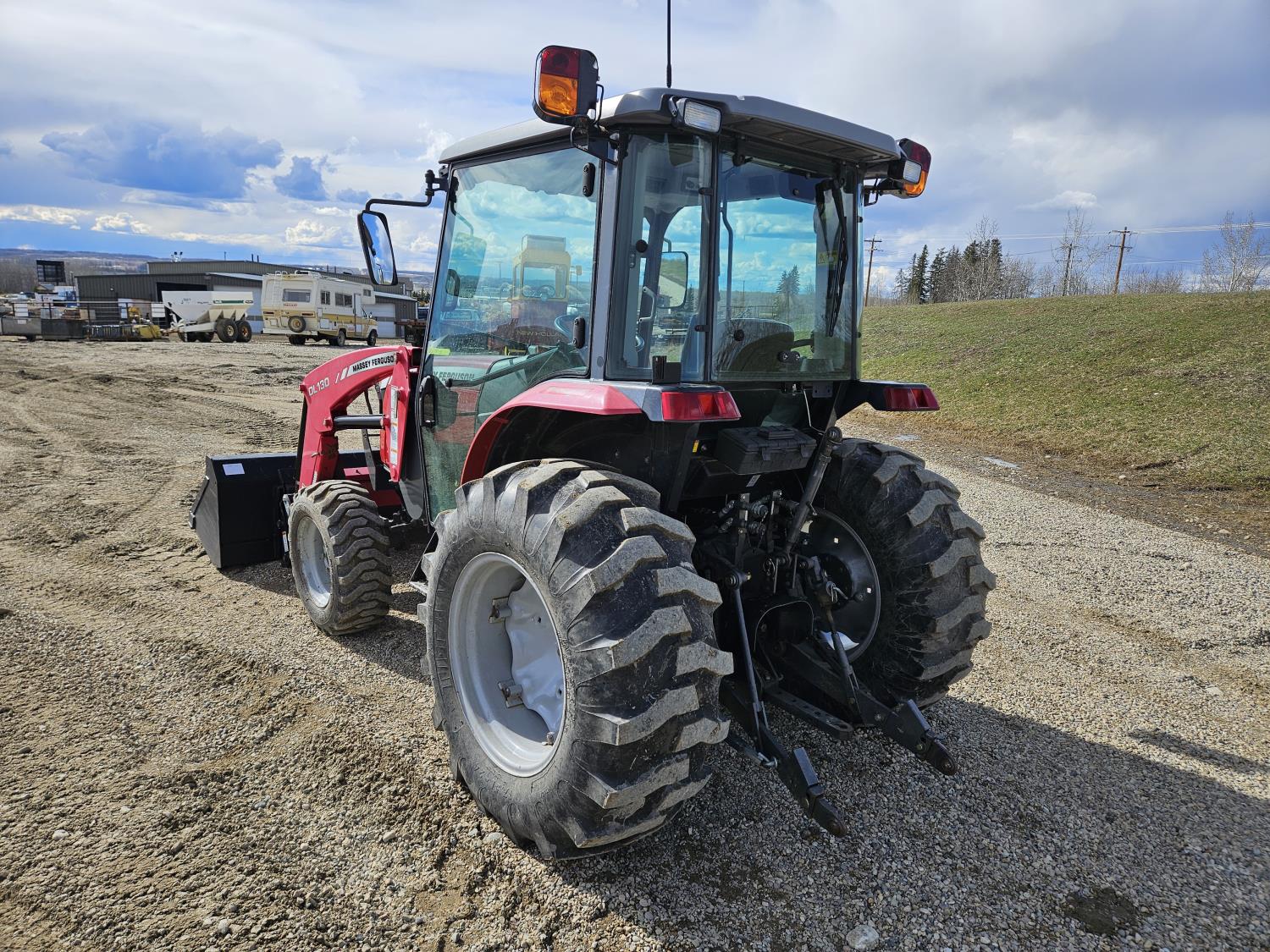 Massey Ferguson DL130 loader, Q/A, 72 inch bucket, Iseki 3.0 L 4 cylinder 52 HP, diesel engine, 12 speed hydro 3 range transmission, cab, shuttle shift, joystick, A/C, radio, 540 PTO, 3 point hitch, 2 rear hydraulic outlets, 10-16.5 front tires, 17.5L-24 rear tires, c/w 7ft MF 1550 belly mount blade