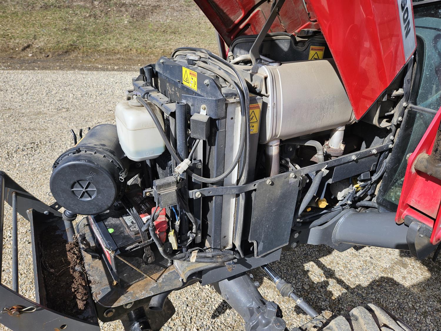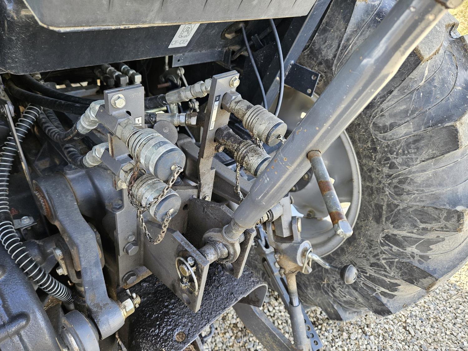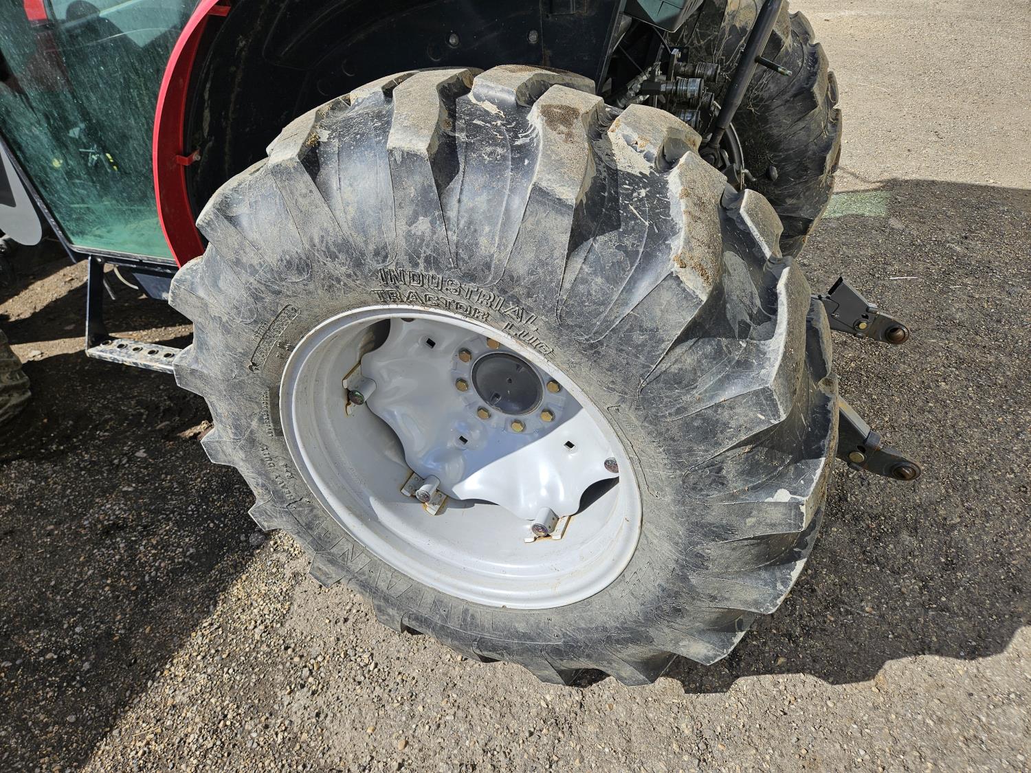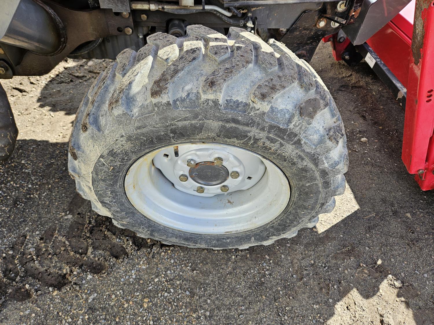 Massey Ferguson DL130 loader, Q/A, 72 inch bucket, Iseki 3.0 L 4 cylinder 52 HP, diesel engine, 12 speed hydro 3 range transmission, cab, shuttle shift, joystick, A/C, radio, 540 PTO, 3 point hitch, 2 rear hydraulic outlets, 10-16.5 front tires, 17.5L-24 rear tires, c/w 7ft MF 1550 belly mount blade