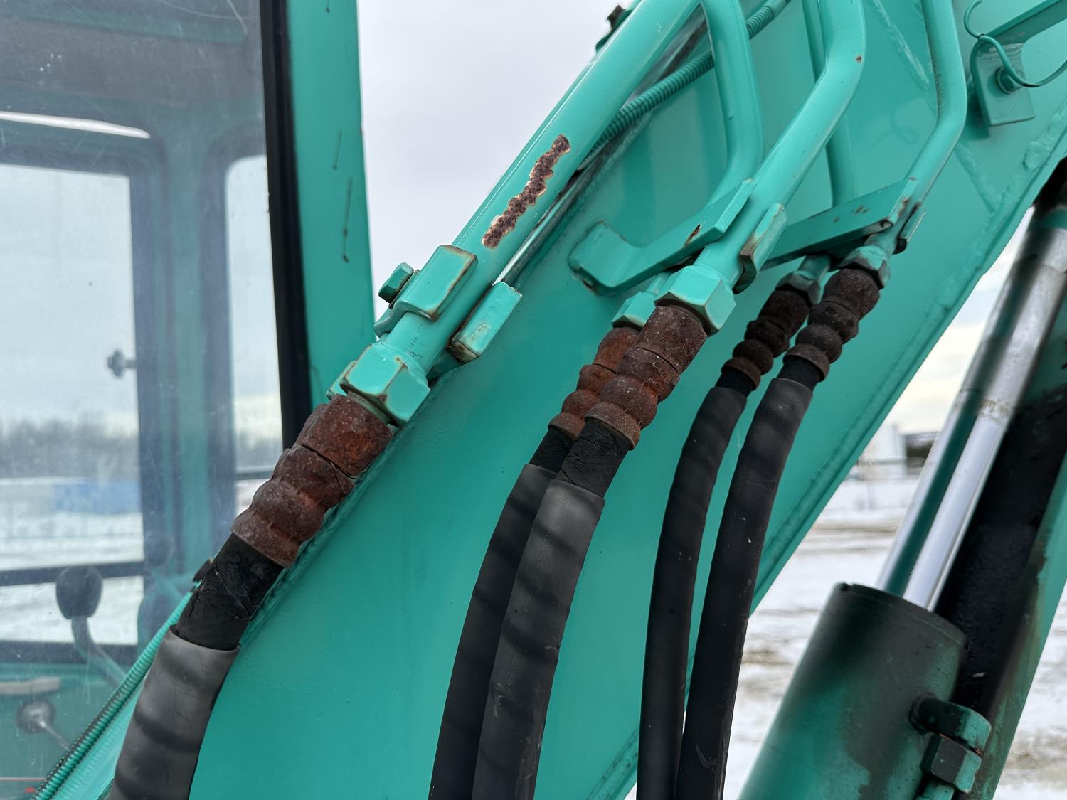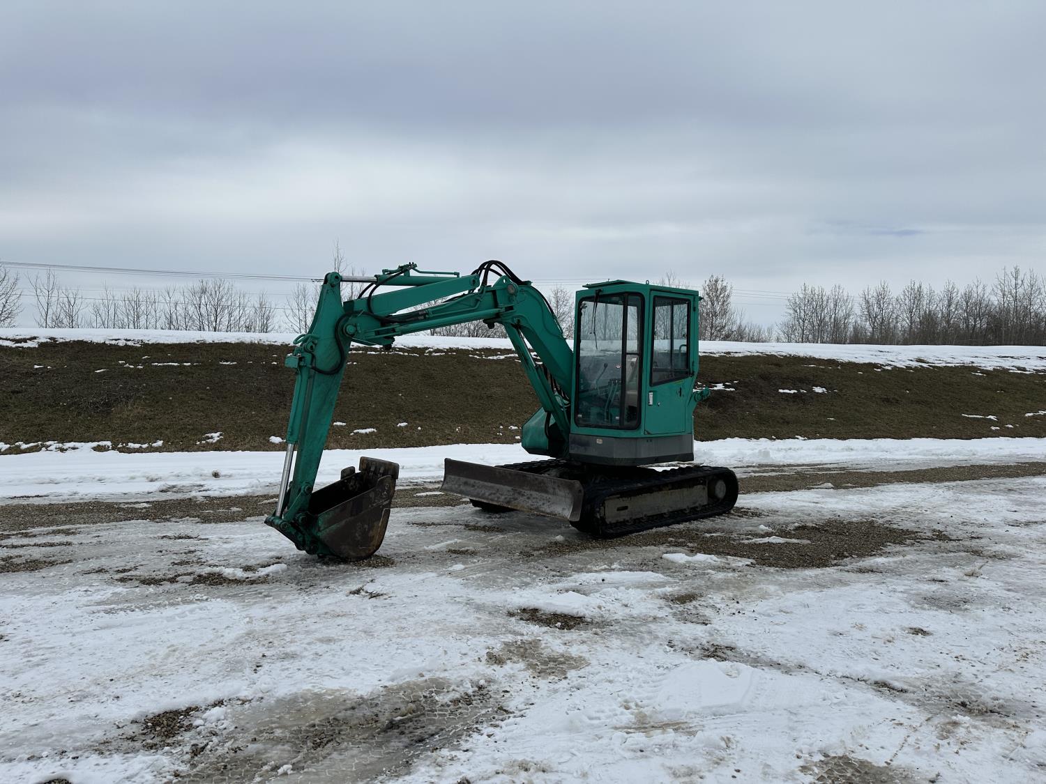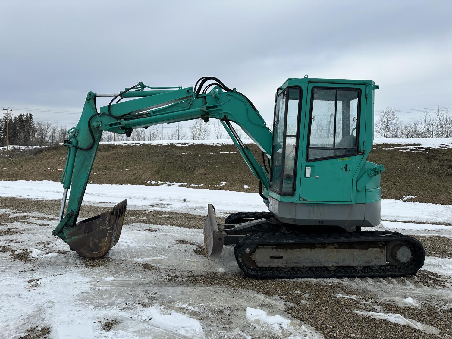 Enclosed cab, two-piece offset boom, 3D95S-W-1 Komatsu 3-cylinder, 2.0L, engine, 24 inch cleanup bucket, 5 Ft 4 inch stick, backfill blade, 15 inch rubber tracks