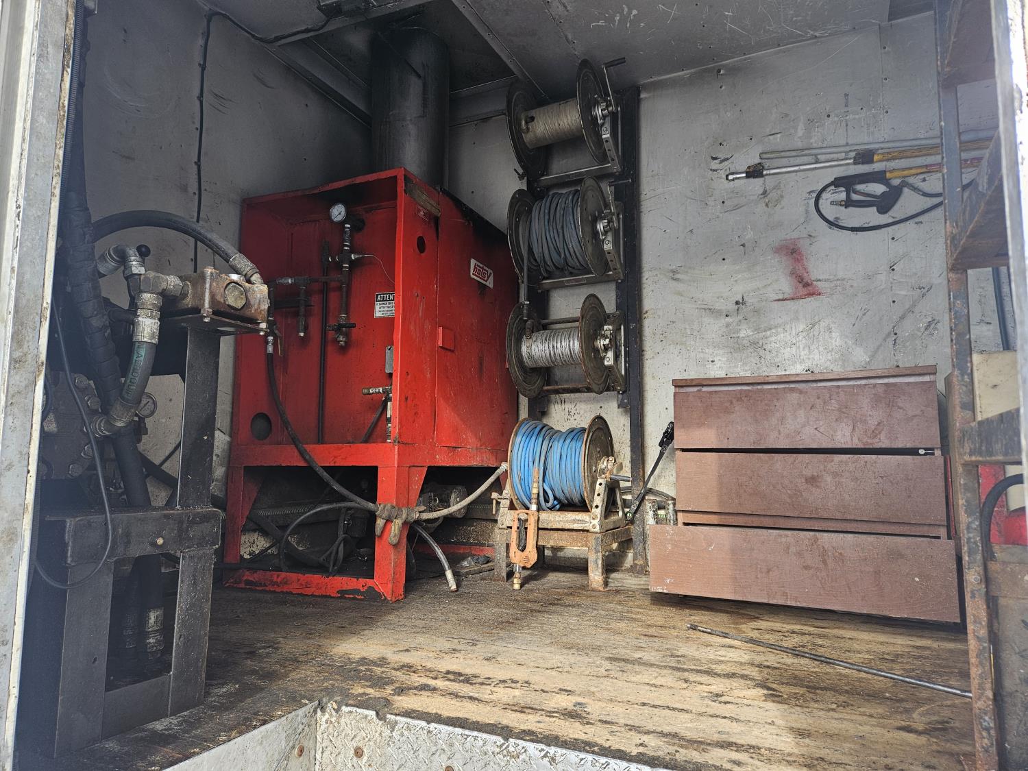 Caterpillar 3126 7.2 L 6 cylinder engine, positive air shutoff, 6 speed manual transmission, Hotsy steam unit (winterized), hose reels, hoses, water storage, cruise control, air ride driver seat, radio, hydraulic wet kit, Cat Pumps 3517 hydraulic pump, air ride suspension, 12,000 lb front axle, 21,000 lb rear axles, 11R22.5 tires