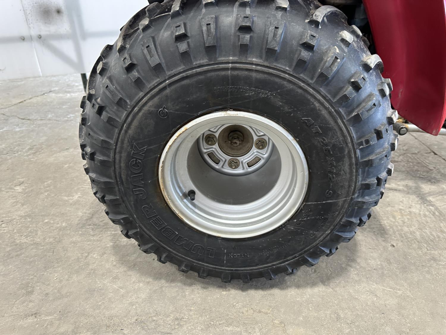 electric start, has reverse, front and rear cargo racks, rear hitch, front tire: 25x12.00-9, rear tires: 25x12-9