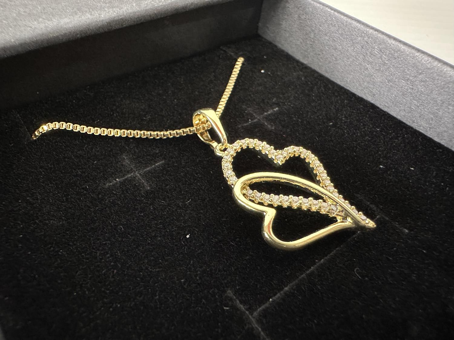 1711 Smartlife 14K Gold Plated Double Heart Necklace (Unused)