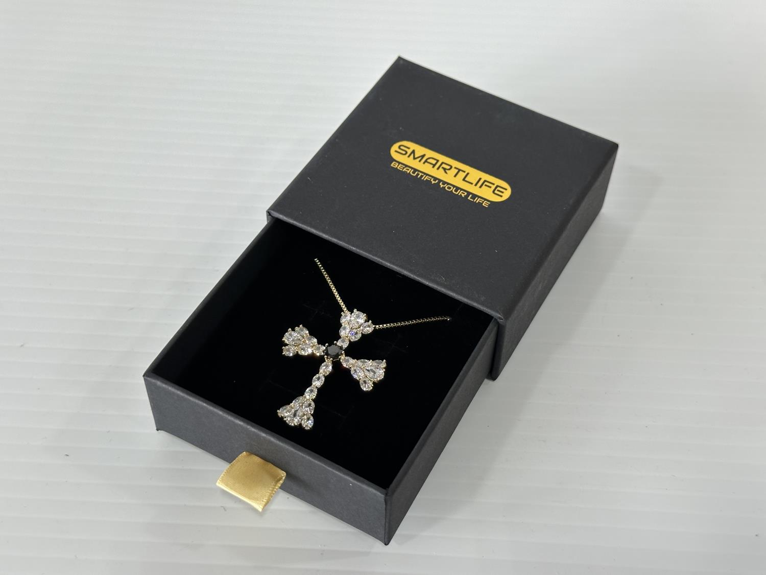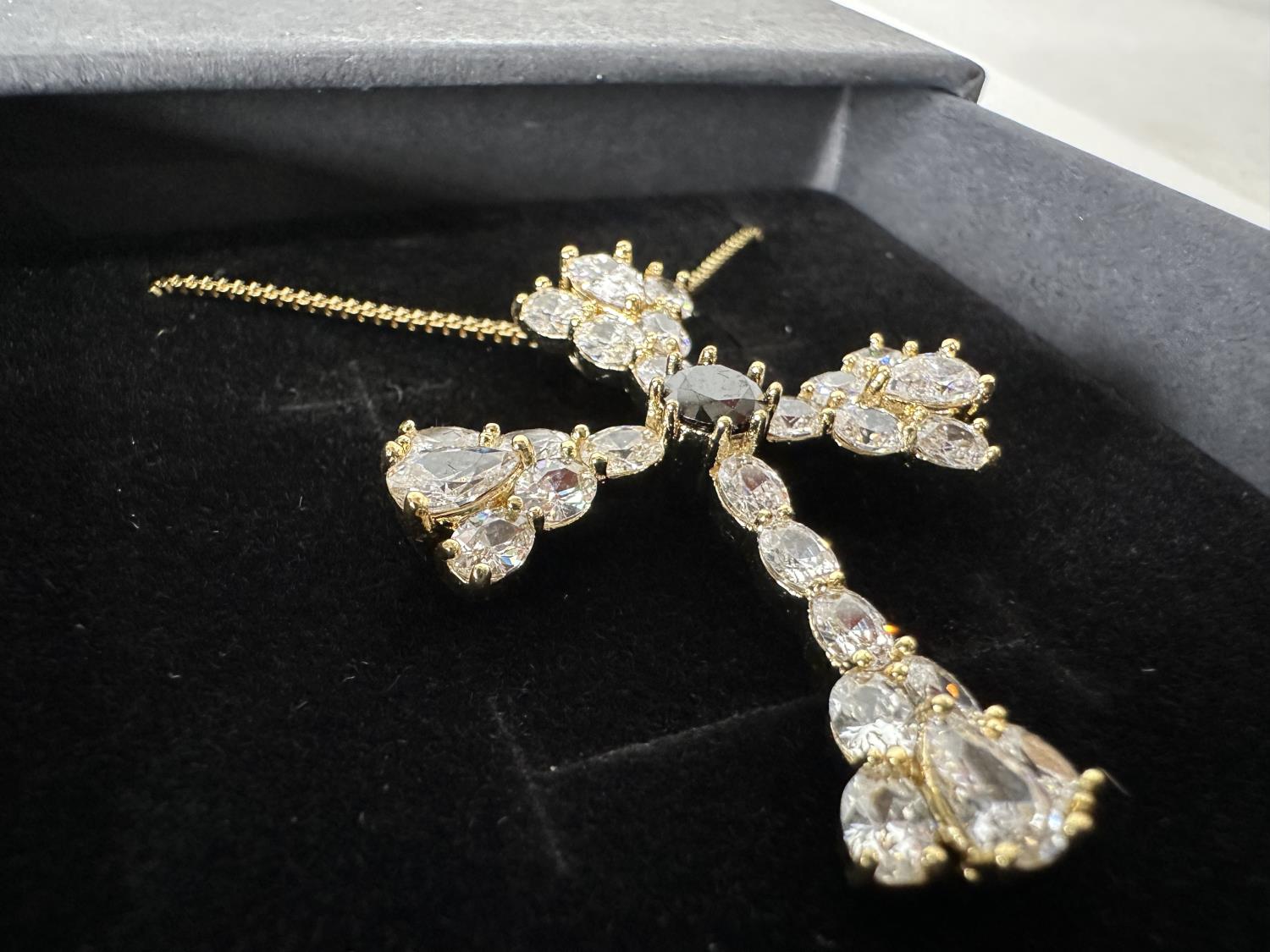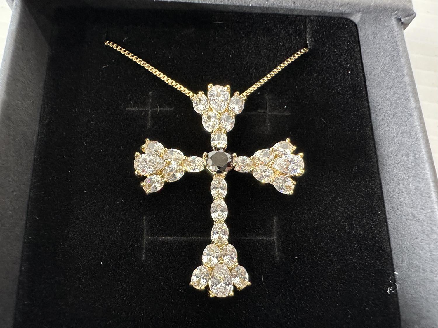 1712 Smartlife 14K Gold Plated Simulated Diamond Cross Necklace (Unused)