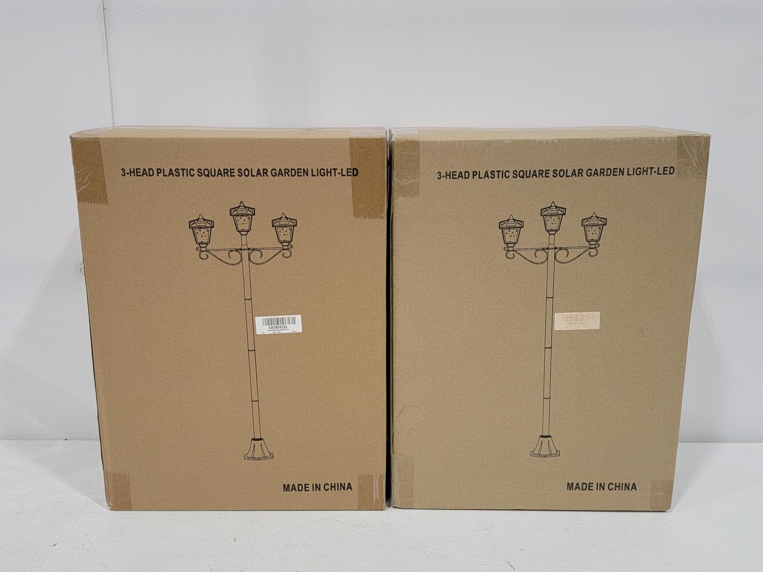 1143 (2) 3-Head Plastic Solar Garden Lights (Unused)