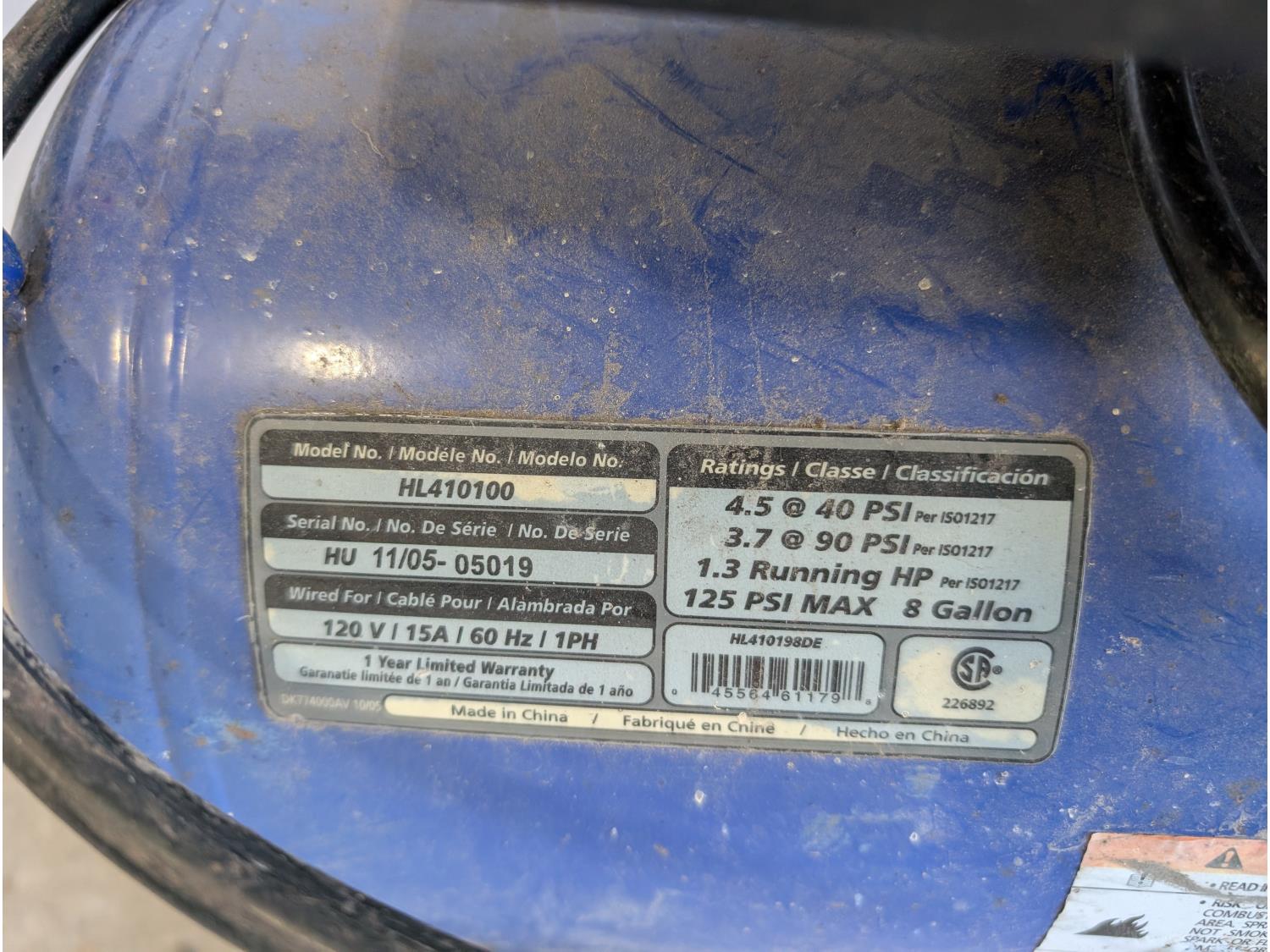 120V, 1 HP, 125 PSI