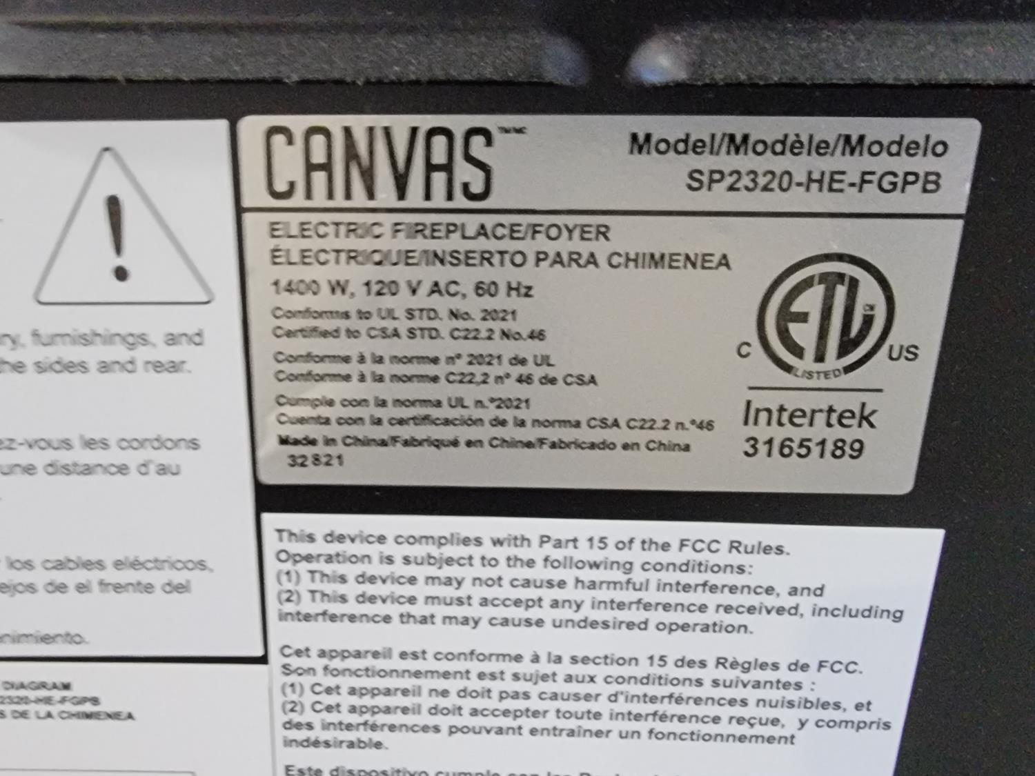 1188 Canvas Electric Fireplace