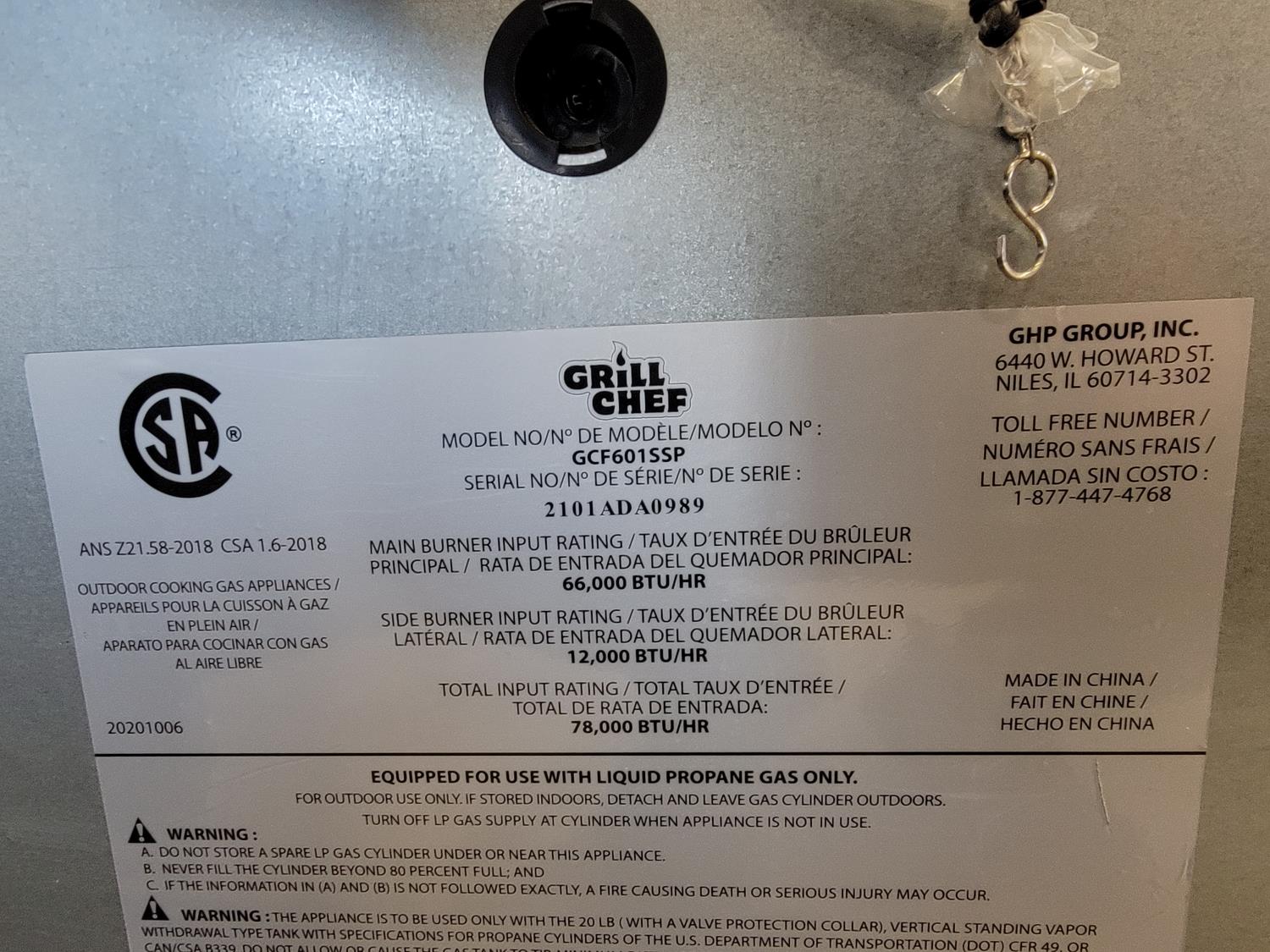 1230 Grill Chef 6 Burner LP BBQ (Unused)