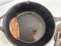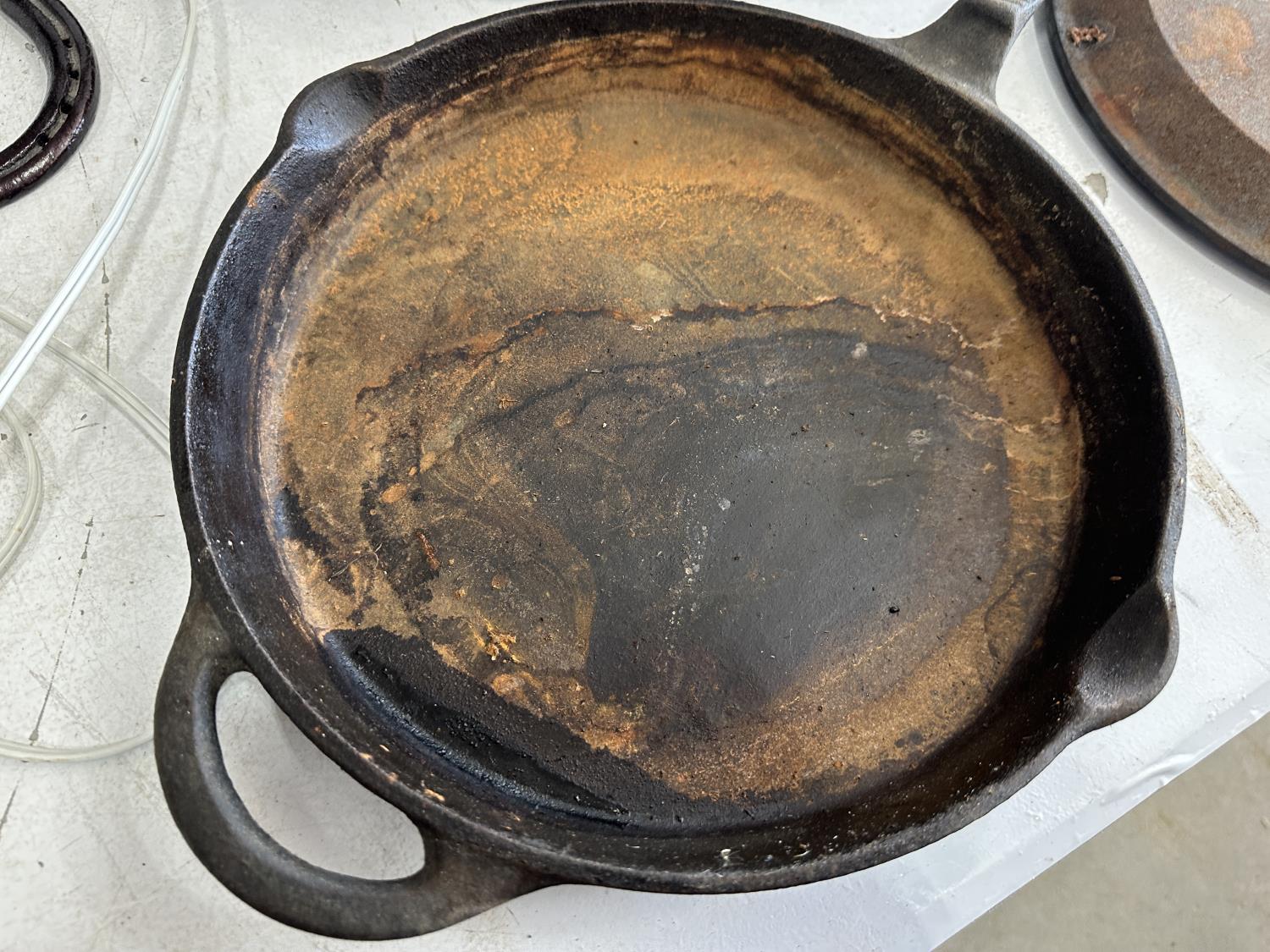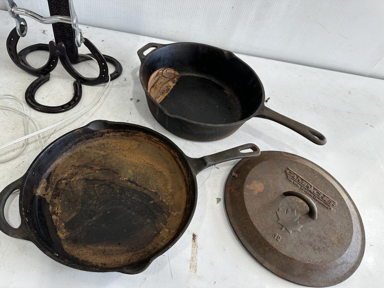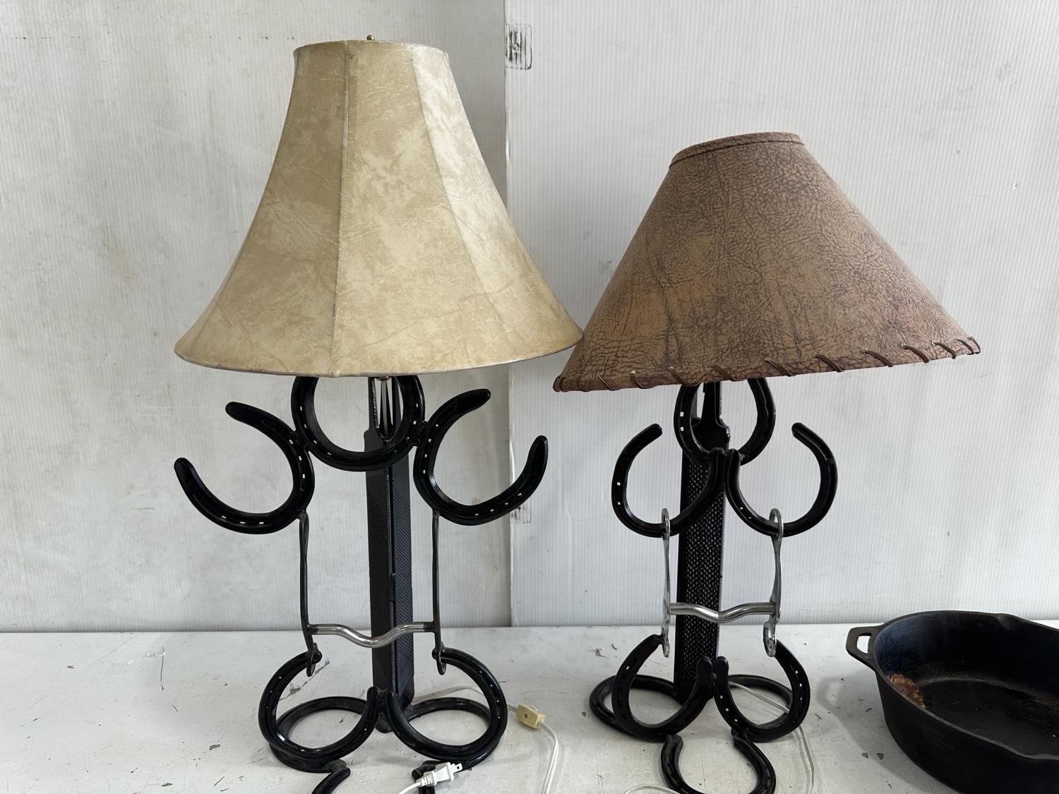 1048 Pair of Western Style Lamps and Set of 12 Inch Cast Iron Pans