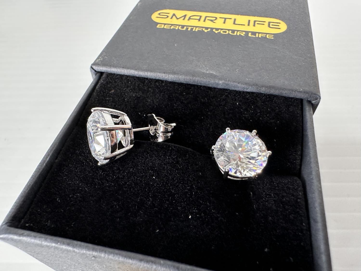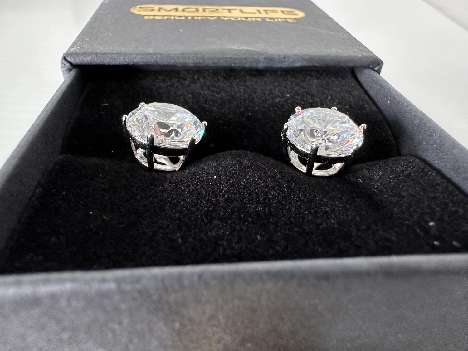 1705 Smartlife Platinum Plated 4.0 Ct Each Stud Earrings (Unused)
