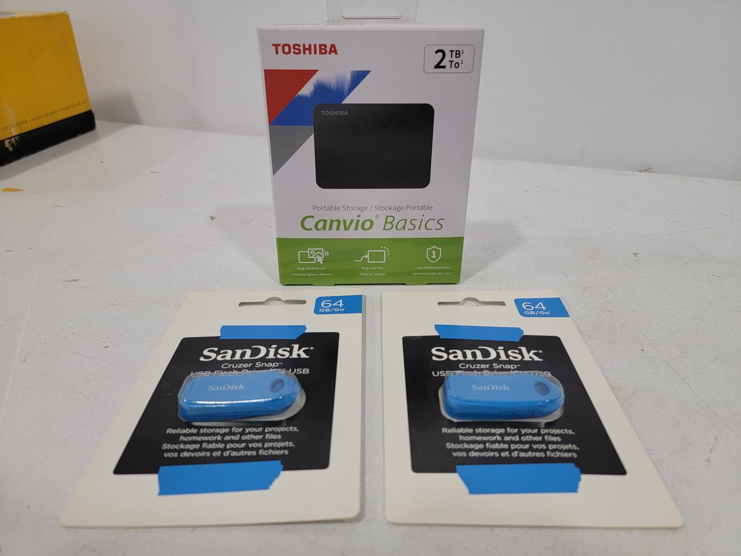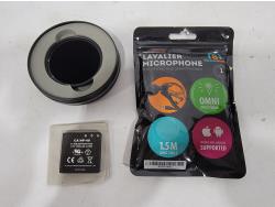 (2) cameras, portable storage, usb flash drives, mic, storage bags