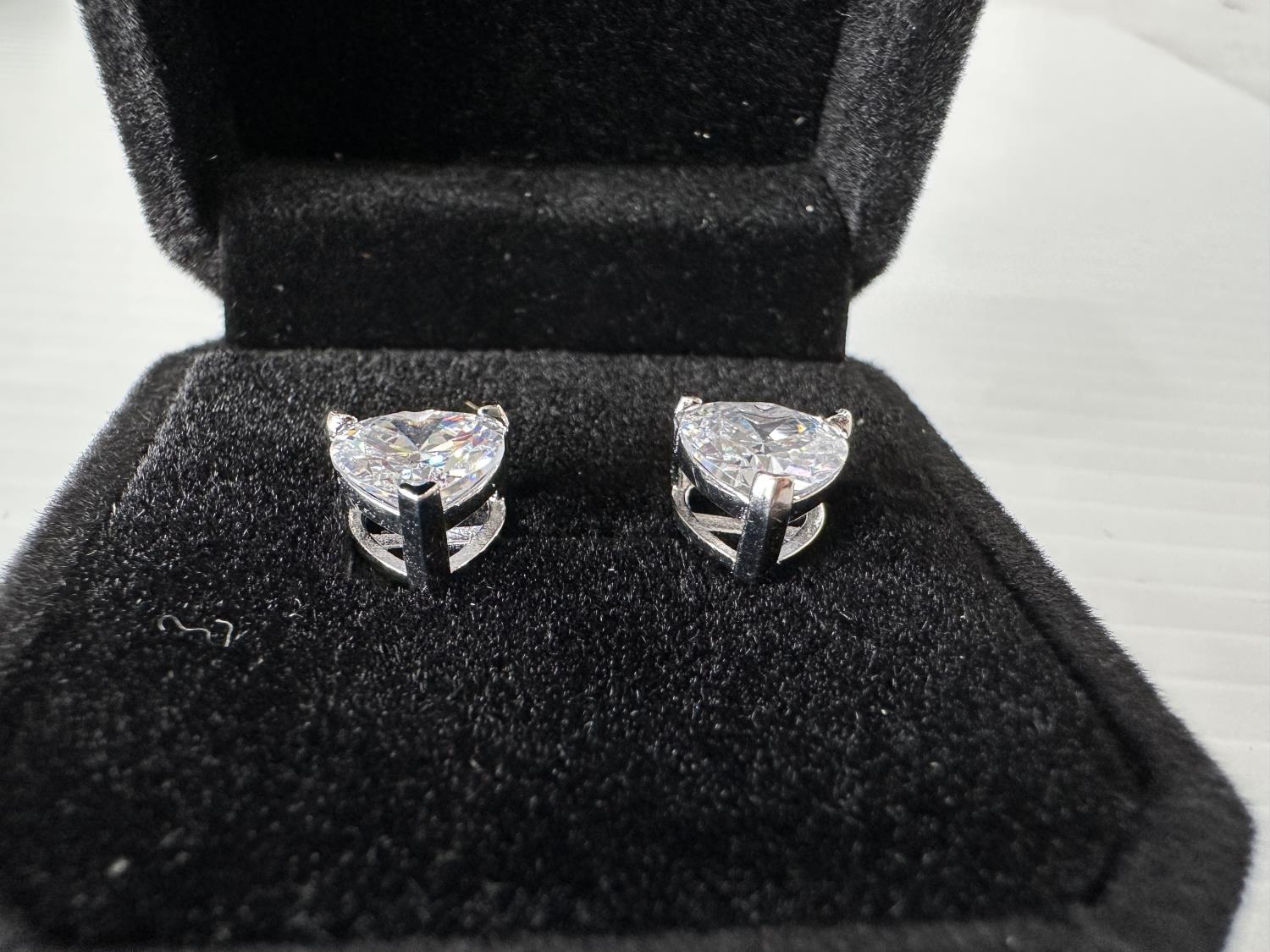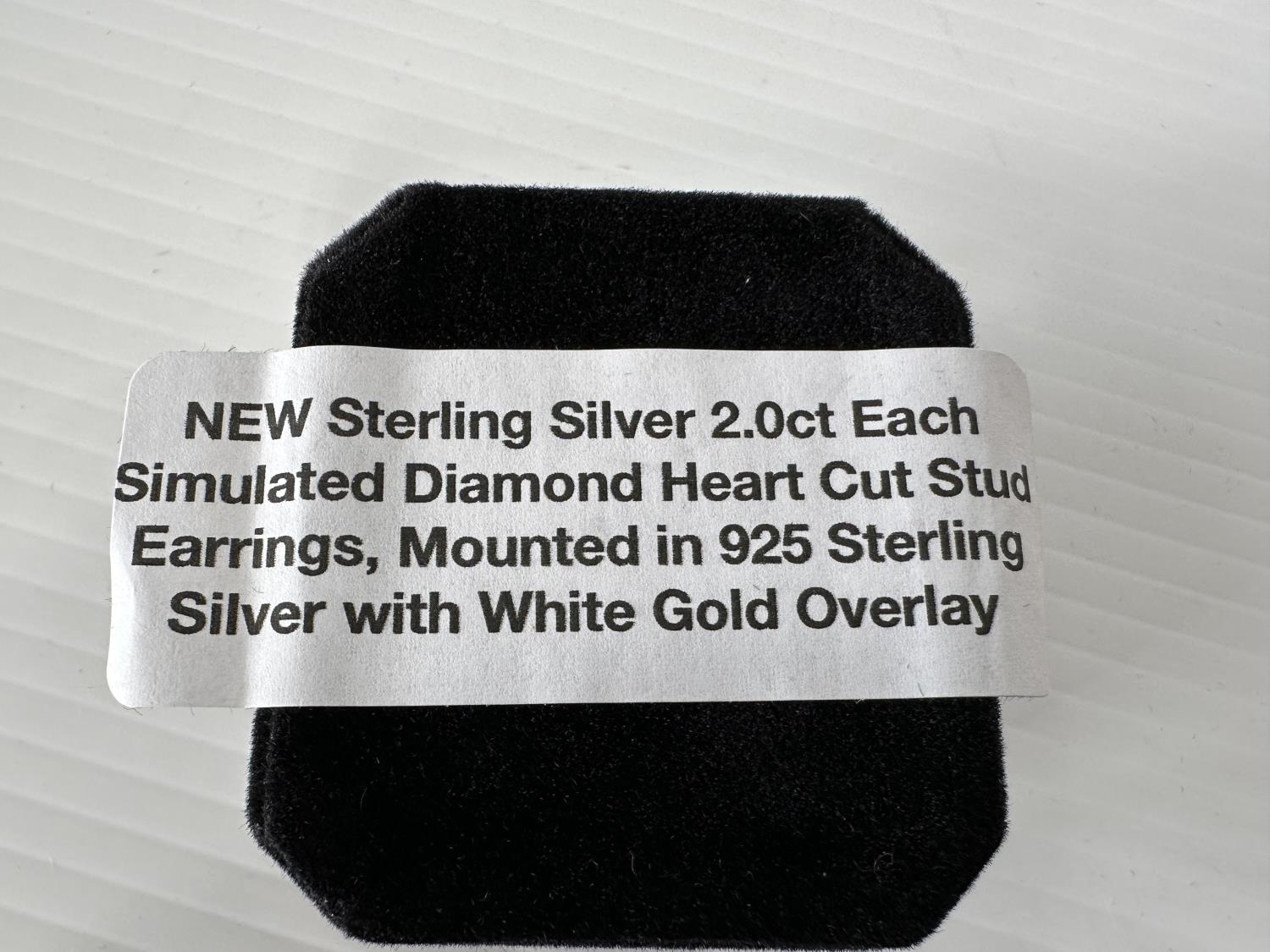1703 Smartlife Sterling Silver 2.0 Ct Each Simulated Diamond Heart Cut Stud Earrings (Unused)