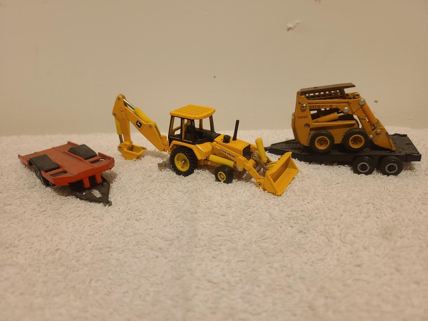 5174 Die Cast John Deere Skidsteer & Case Backhoe w/ Trailers