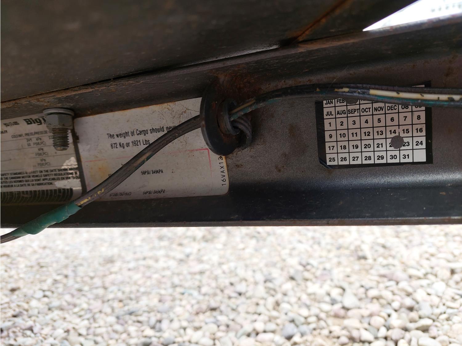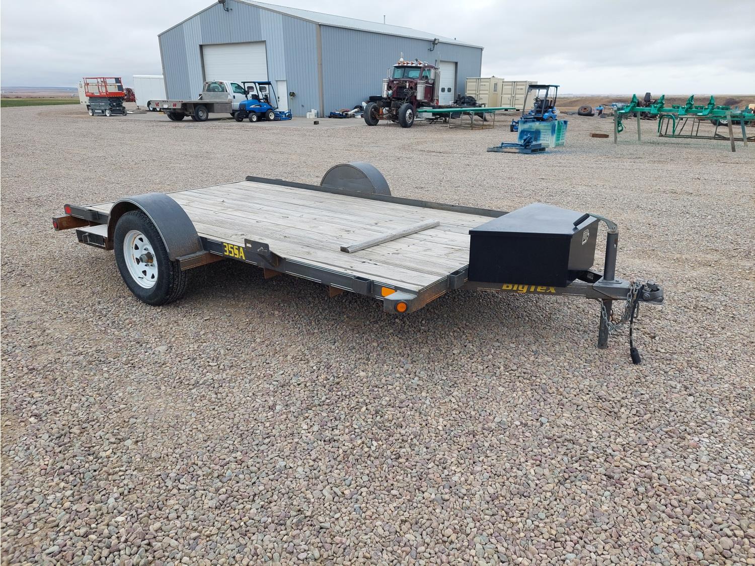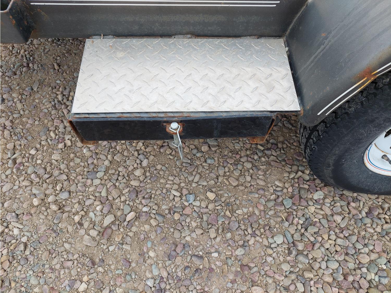 77 inch wide deck, slide in ramps, spring suspension, ball hitch, tool / storage box, 3000 lb axles, 205/75R15 tires