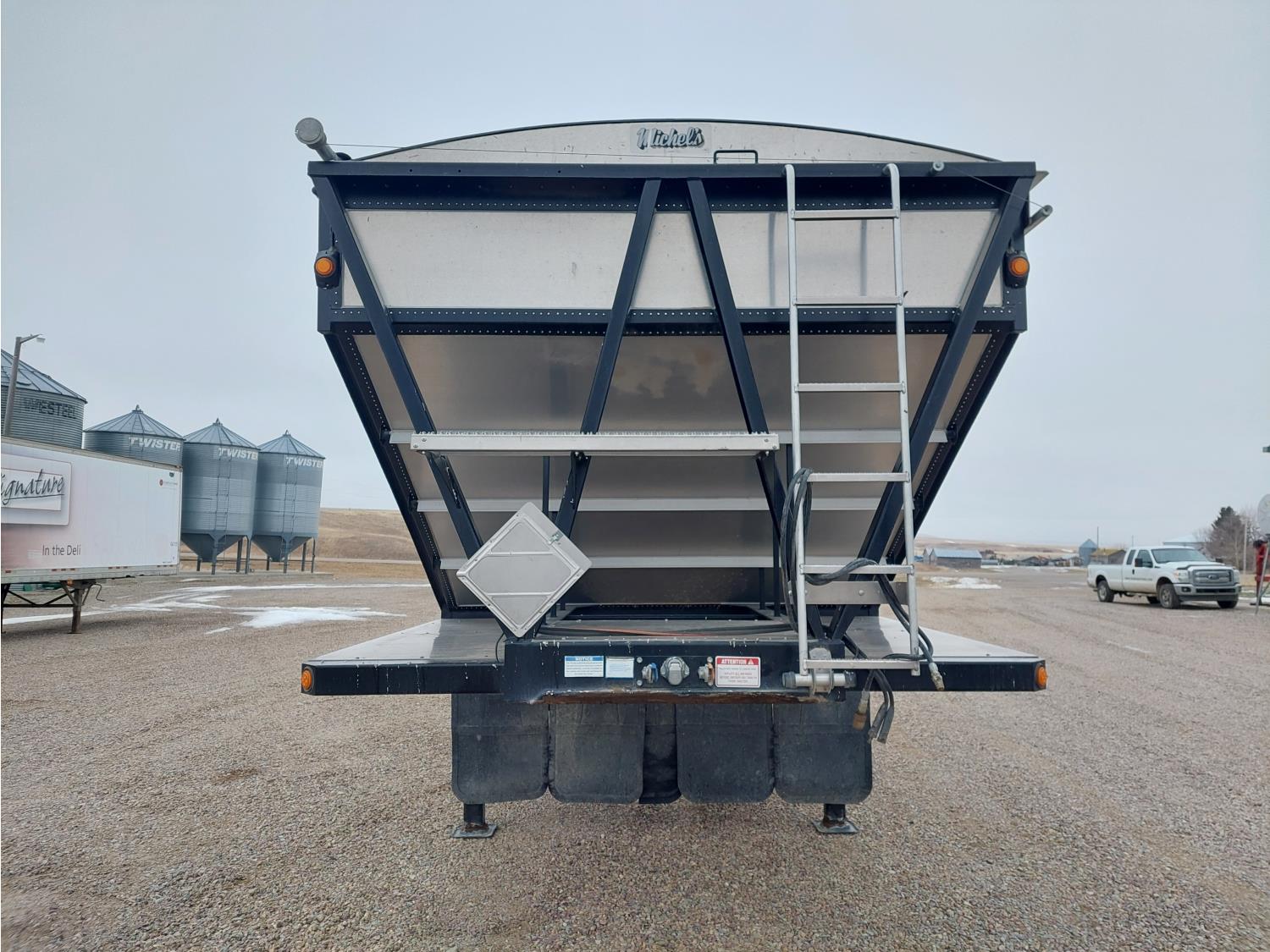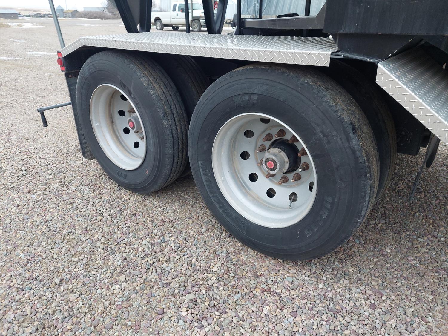 roll tarp, 22,500 lb axles, air ride suspension, air scales, electric gate openers, 11R24.5 tires, Michel's tarp controller