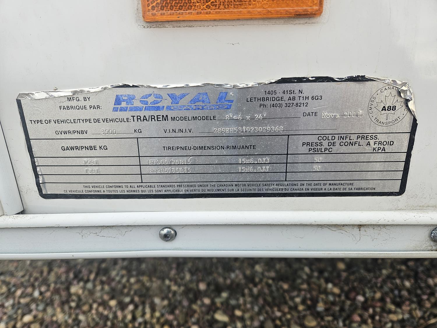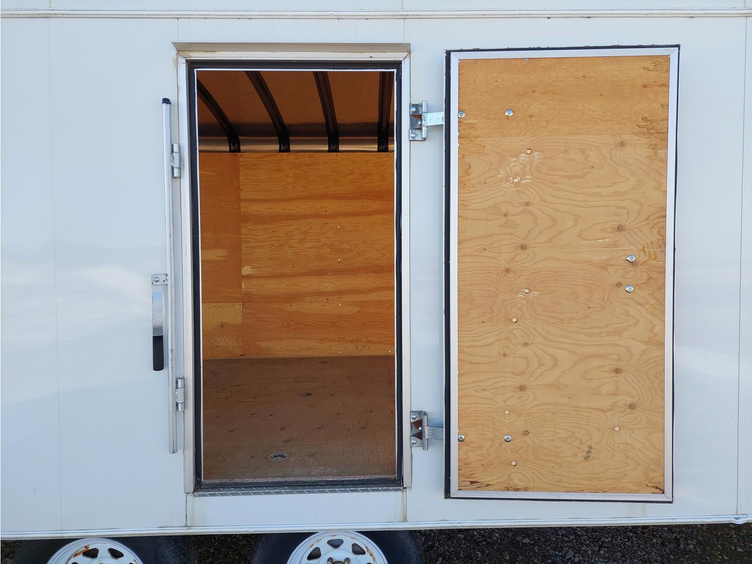 96 inch interior width, 67 inch interior height, ball hitch, side door, fold down door, torsion suspension, 3500 lb axles, 205/75R15 tires