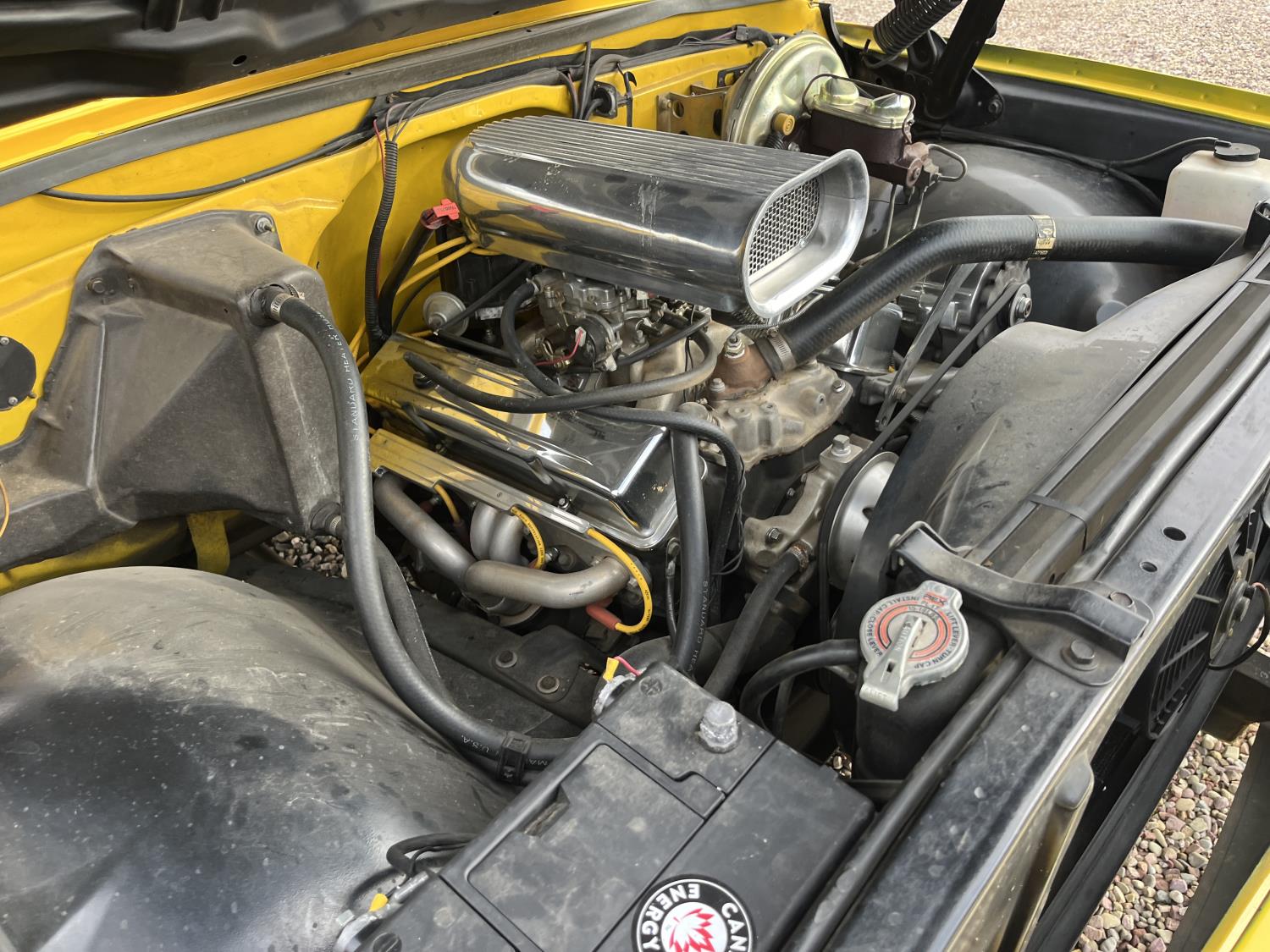 350 cu in, Turbo 350 automatic transmission, drop springs , 275/70R17 tires