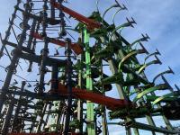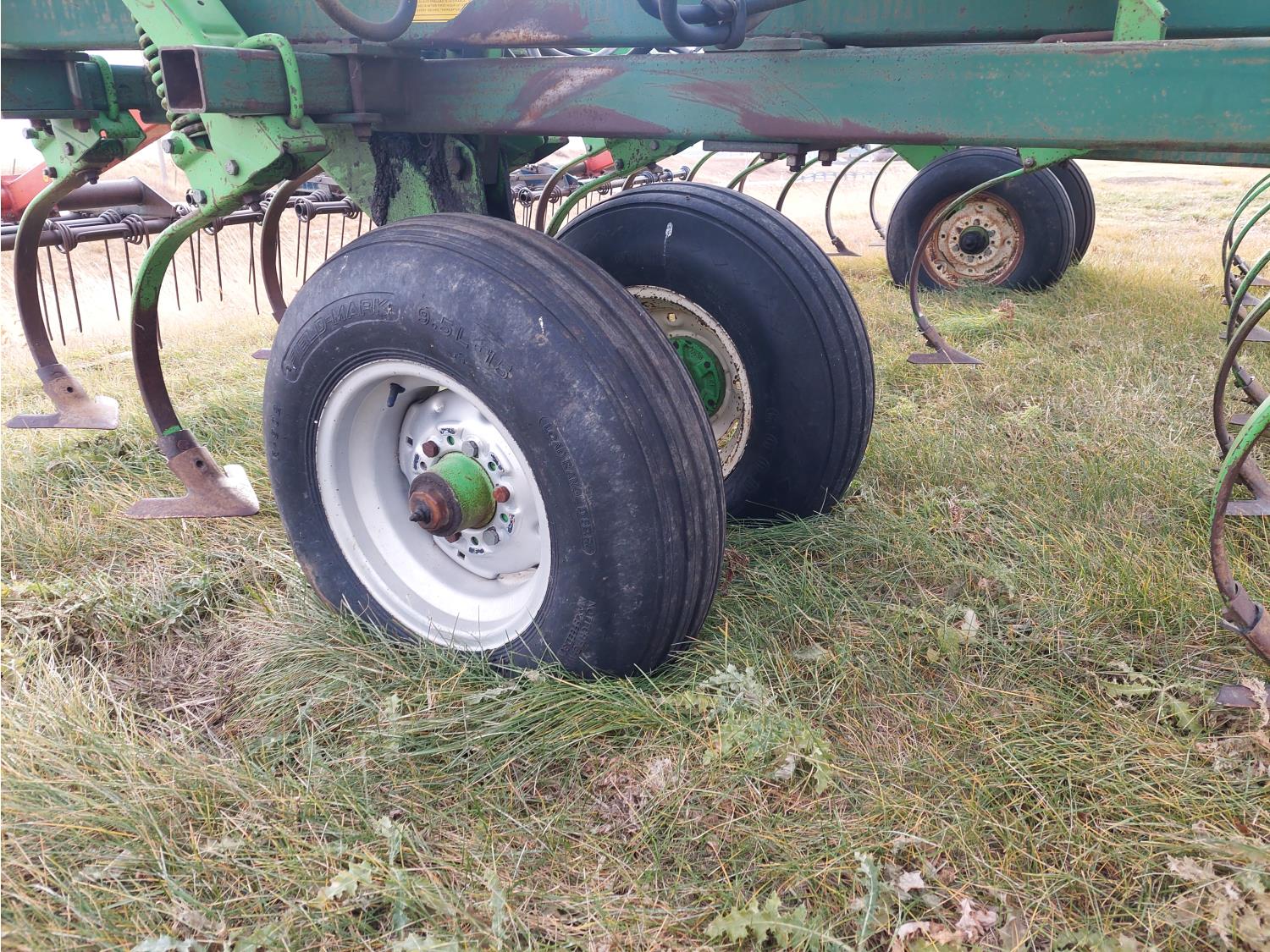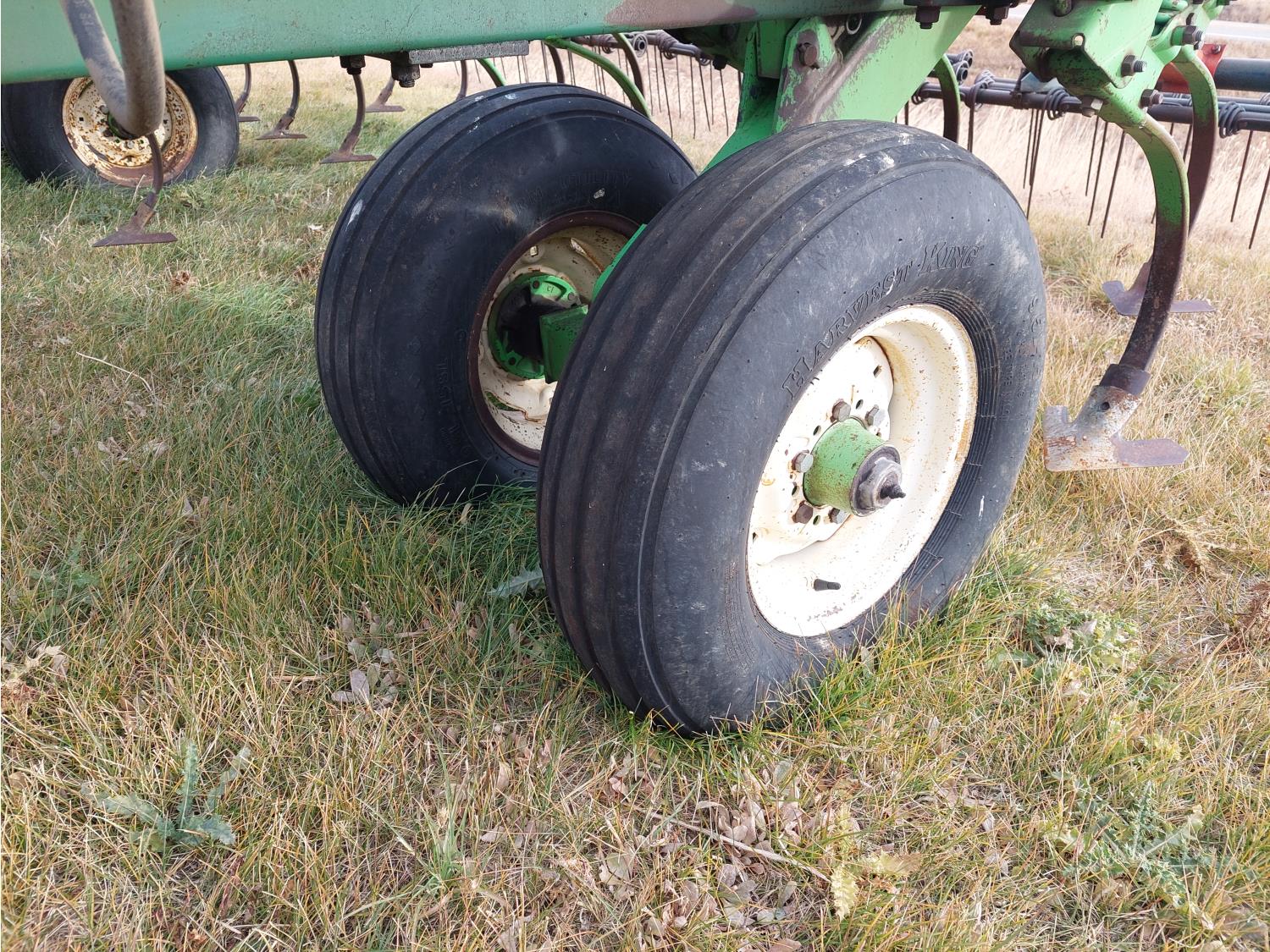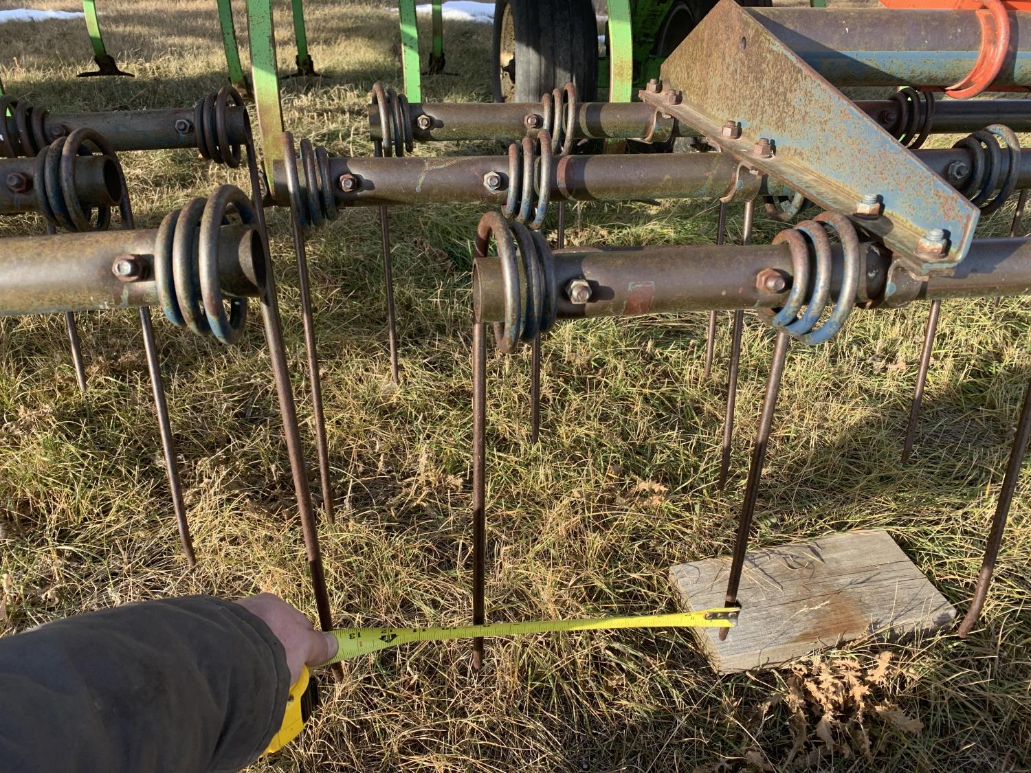 8 inch spacing, 9 inch sweeps, spring tooth harrows, 9.5L-15 tires
